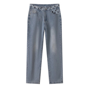 Top Version V Letter Old Flower Print Pocket Straight Jeans Autumn Winter New Unisex Long Pants Loose Casual Wide Leg High Waist Pre-Purchase Instructions