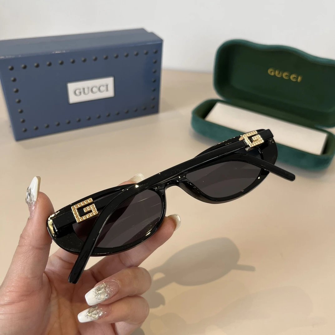 Gucci Sunglasses Letter Rhinestone Temple Sunglasses Slimming Non-Prescription UV Protection Unisex Couple Style Driving Beach Fishing25ss New Sports Casual Versatile
