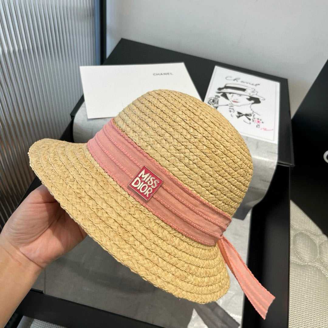 Dior Hat Letter Stickers logo Fisherman Hat Casual Sun Protection UV Protection Plain Face Covering Sun Hat Outdoor Versatile Flat Top Bucket Hat