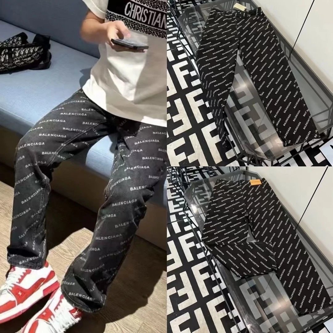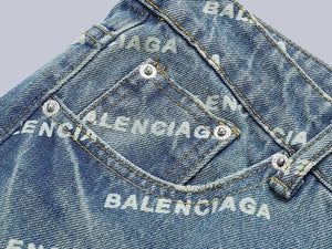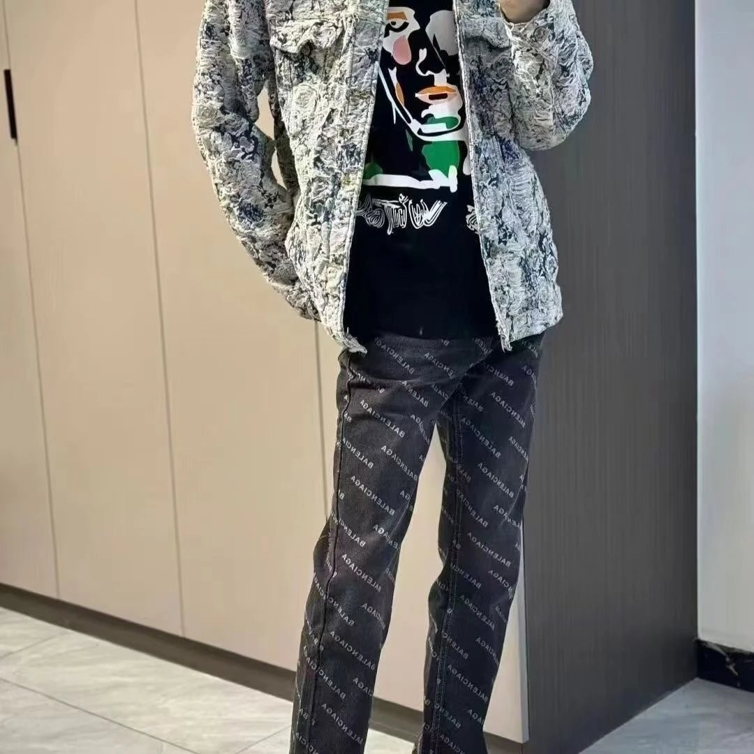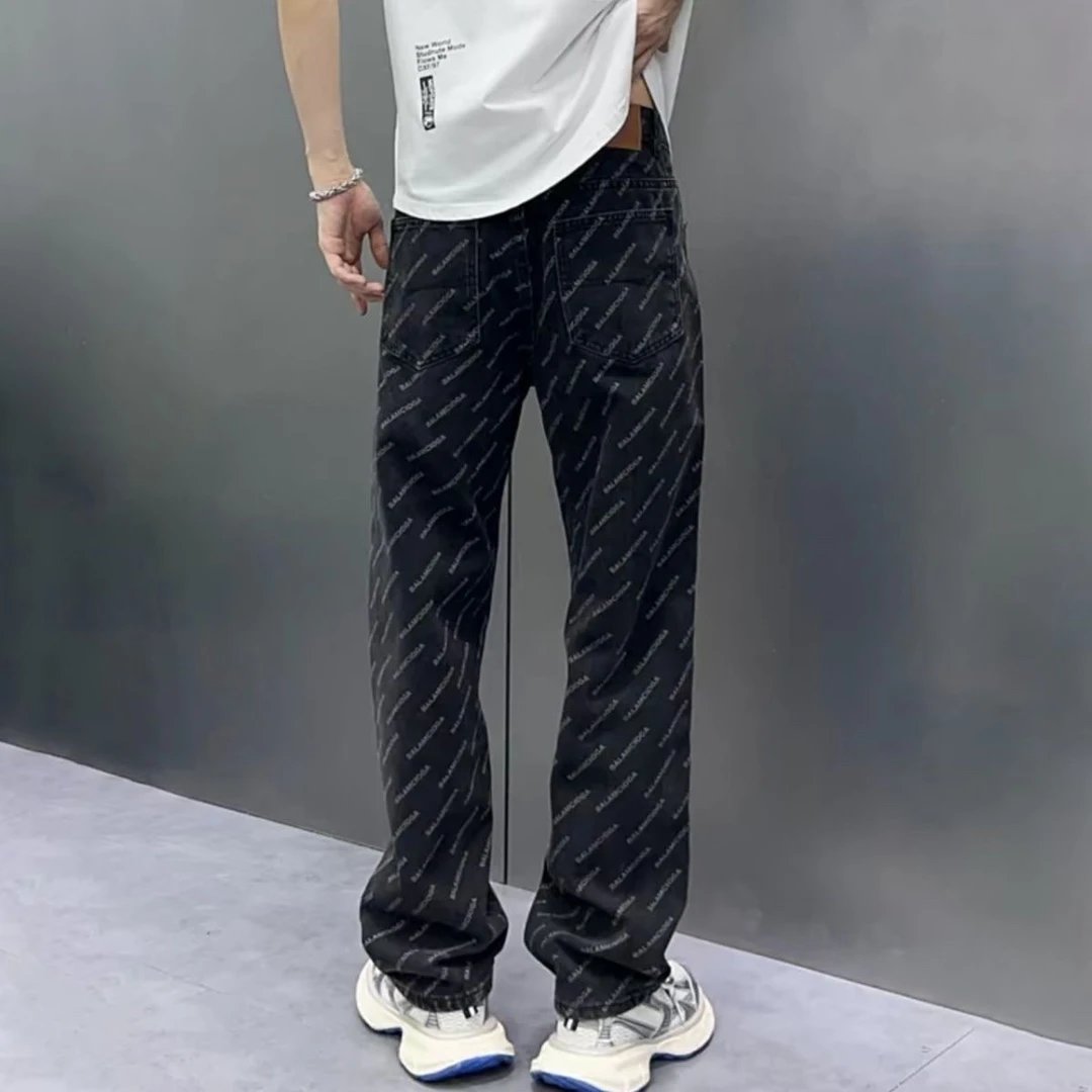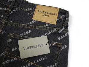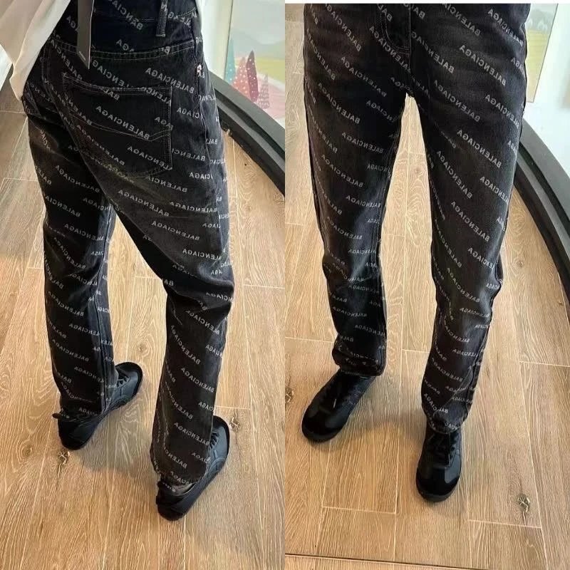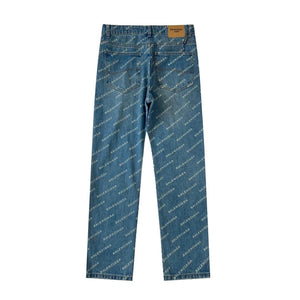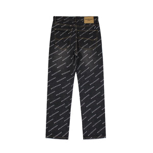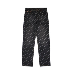 Balenciaga Jeans Letters logo Bullet Screen Full Print Denim Jeans Autumn Winter New Unisex Loose Casual Wide Leg High Waist Pants