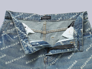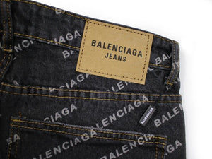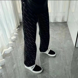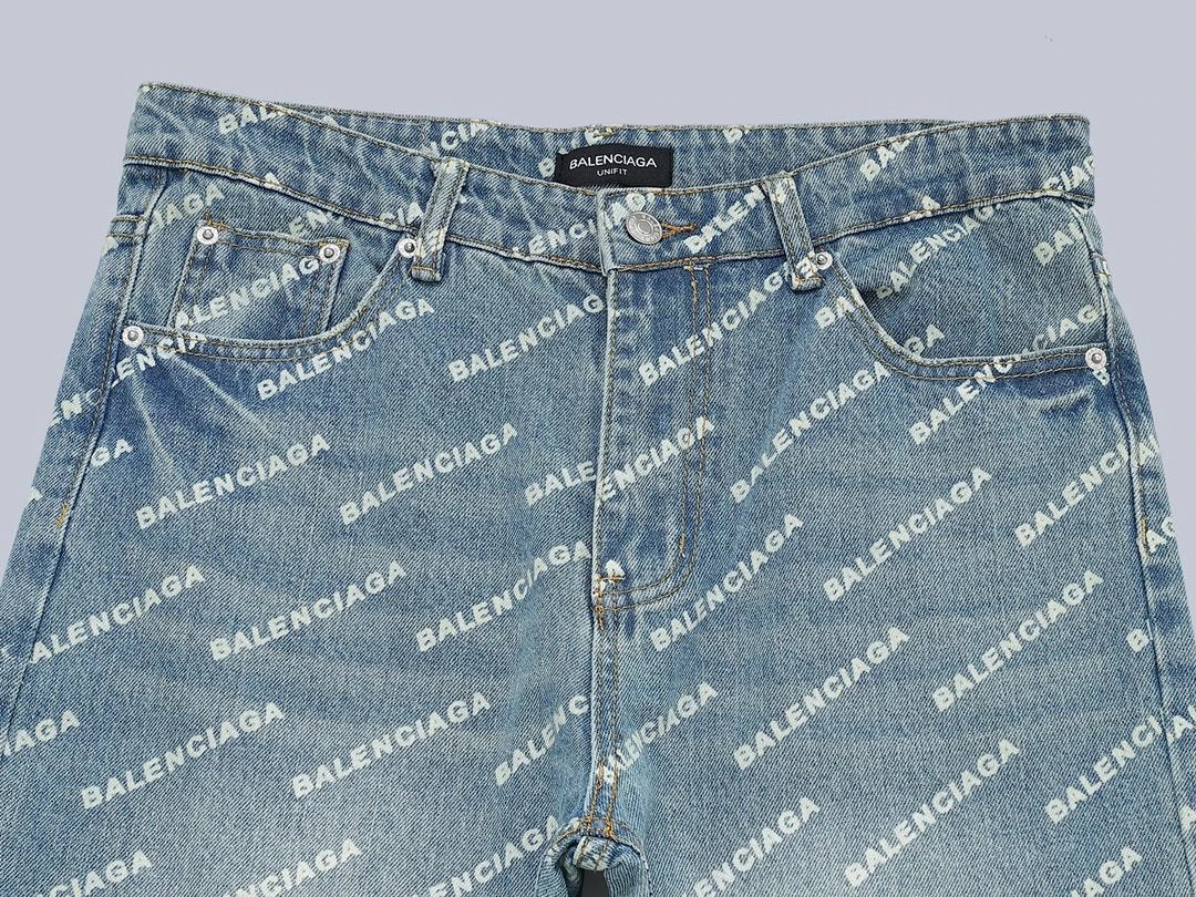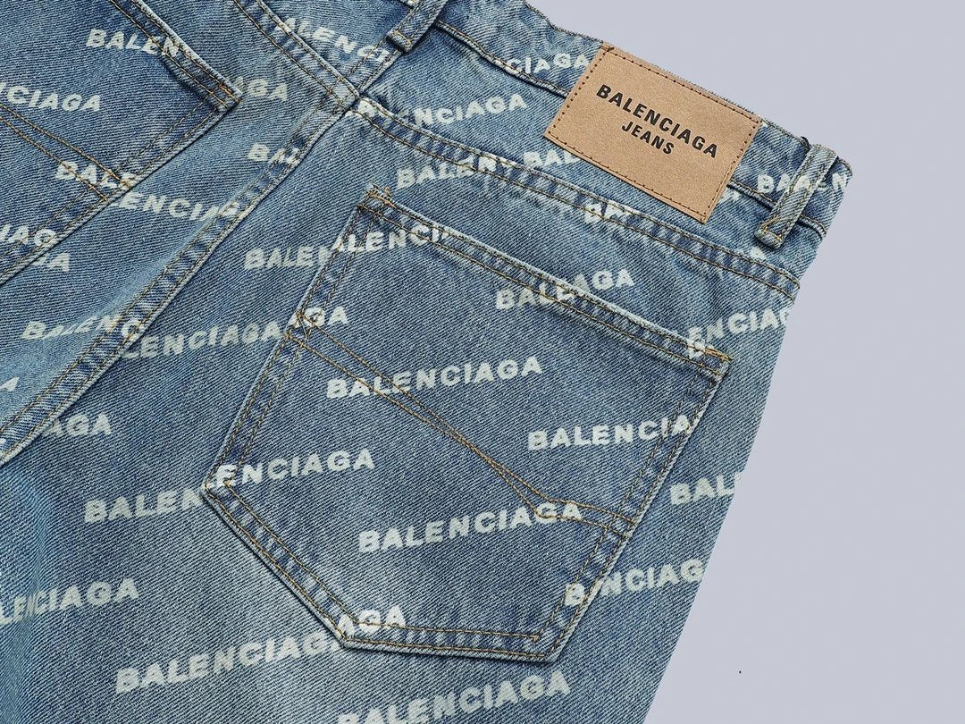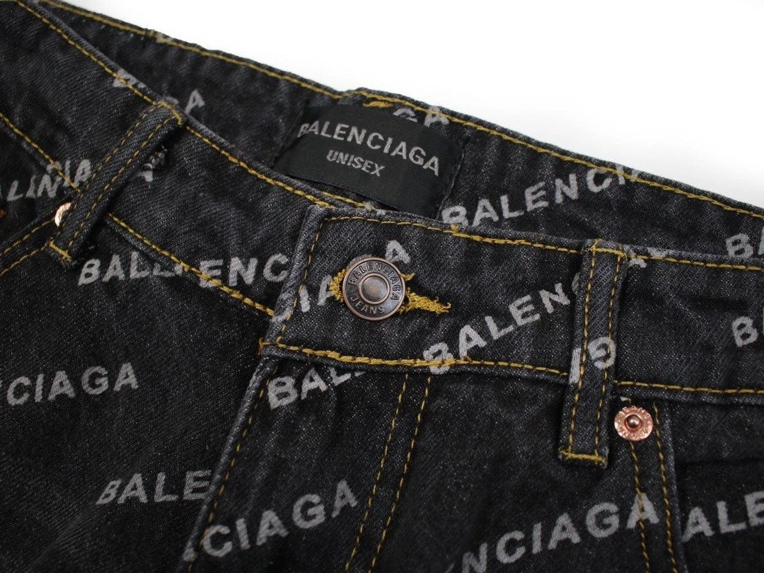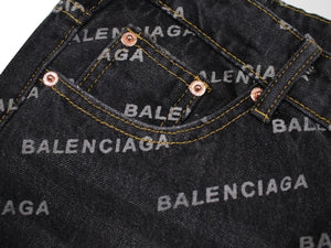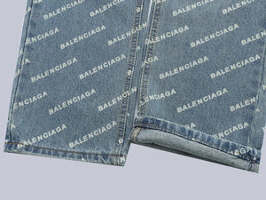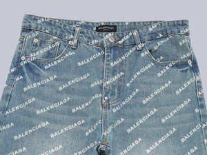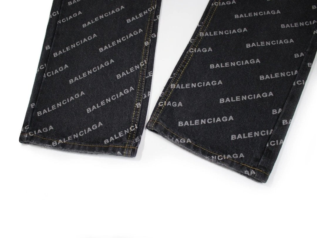 Balenciaga Jeans Letters logo Bullet Screen Full Print Denim Jeans Autumn Winter New Unisex Loose Casual Wide Leg High Waist Pants