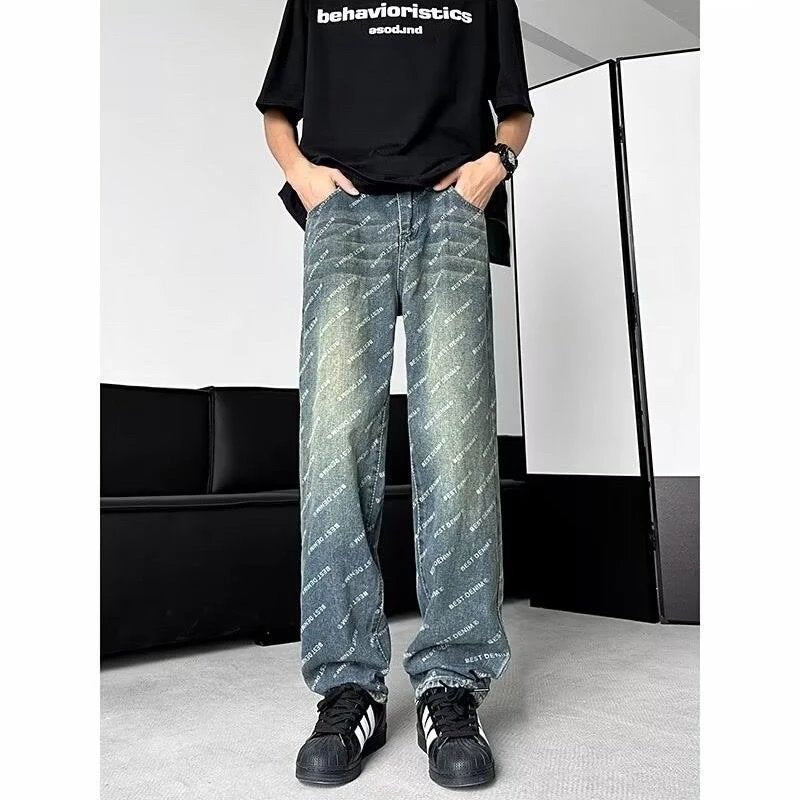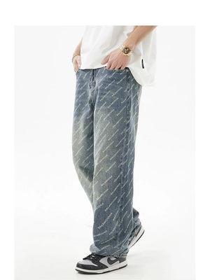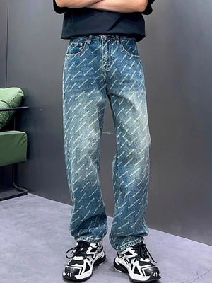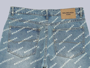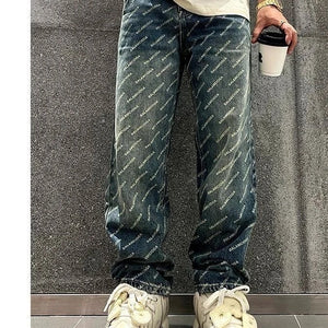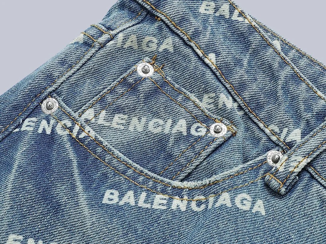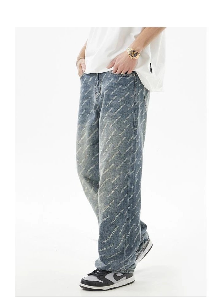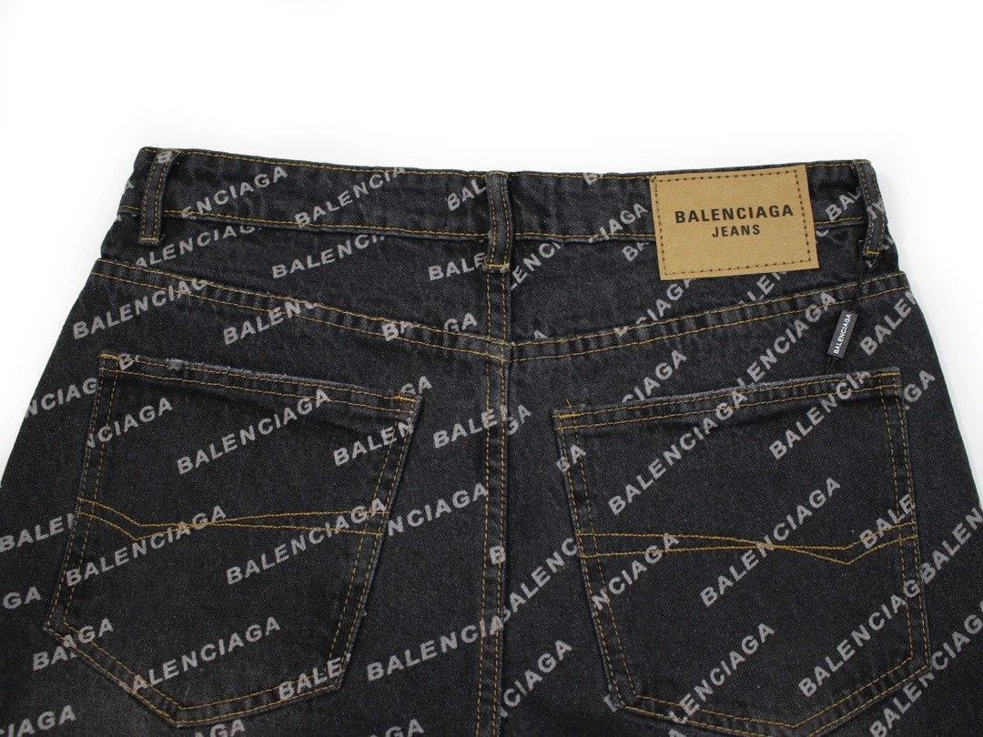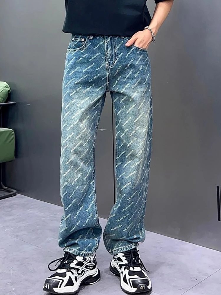 Balenciaga Jeans Letters logo Bullet Screen Full Print Denim Jeans Autumn Winter New Unisex Loose Casual Wide Leg High Waist Pants