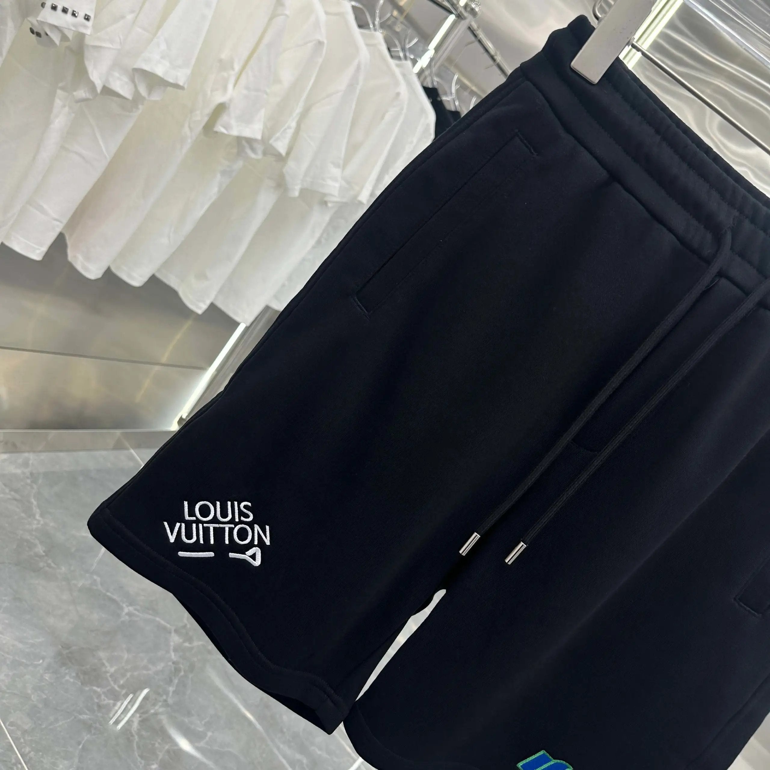 Louis Vuitton LV Shorts Letters logo Classic Pocket Pattern Embroidered Shorts Five-Point Pants25ss New Drawstring Casual Summer Pants5Two-in-One Casual Sweatpants for Men and Women, Pure Cotton Joggers