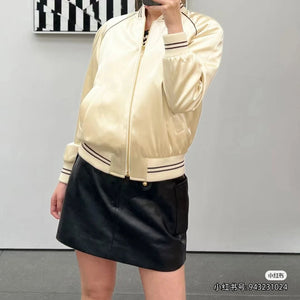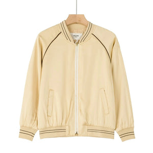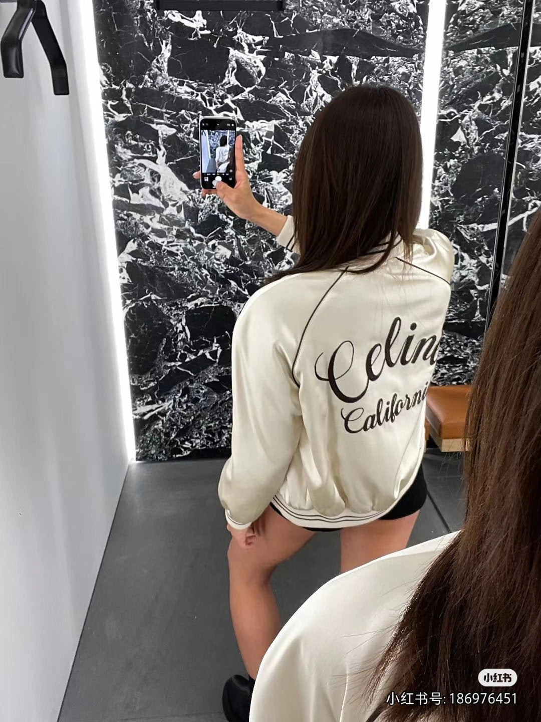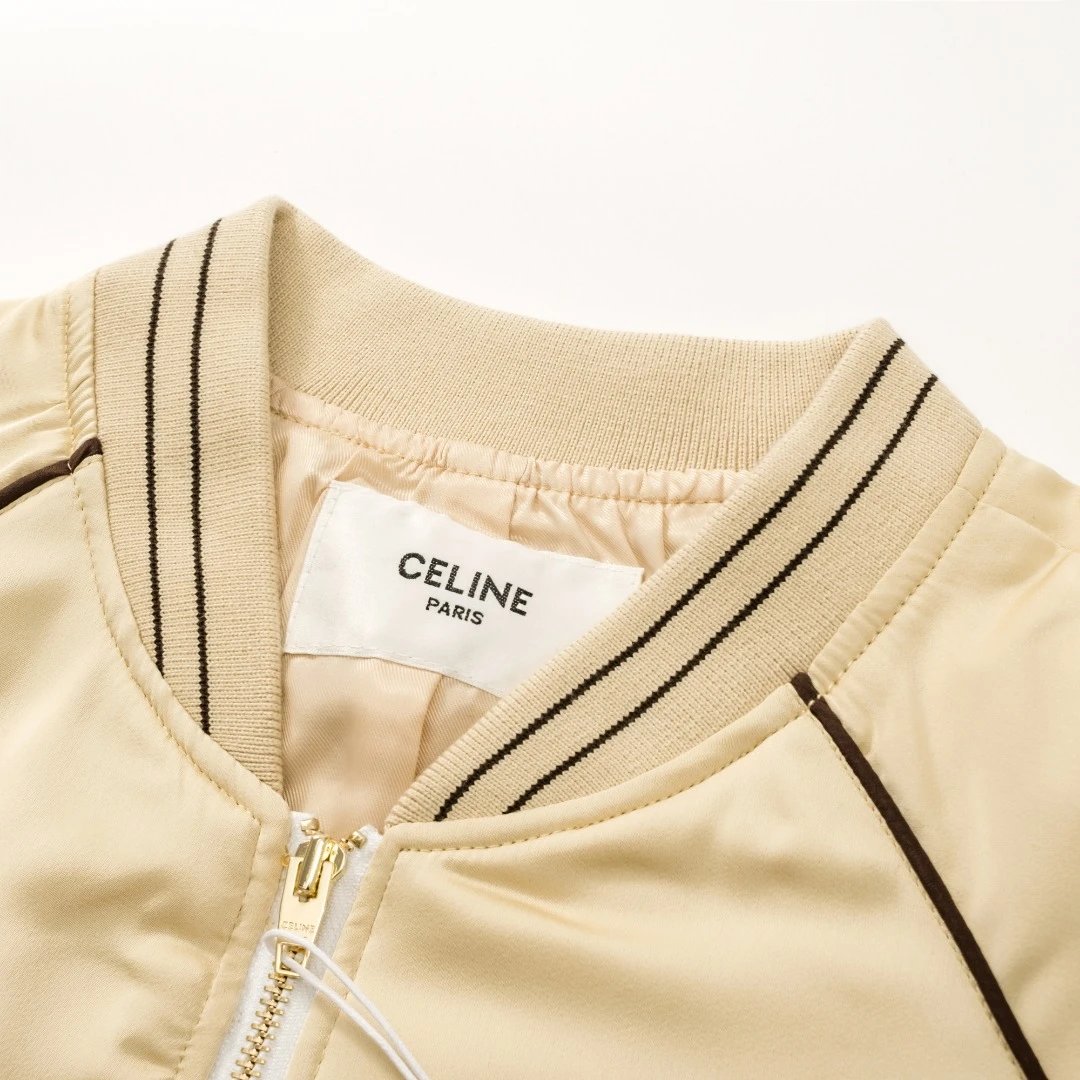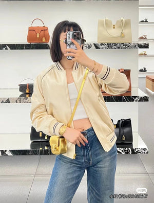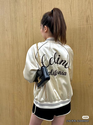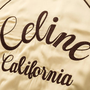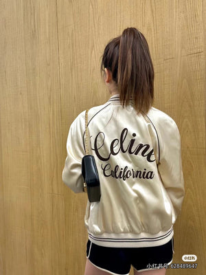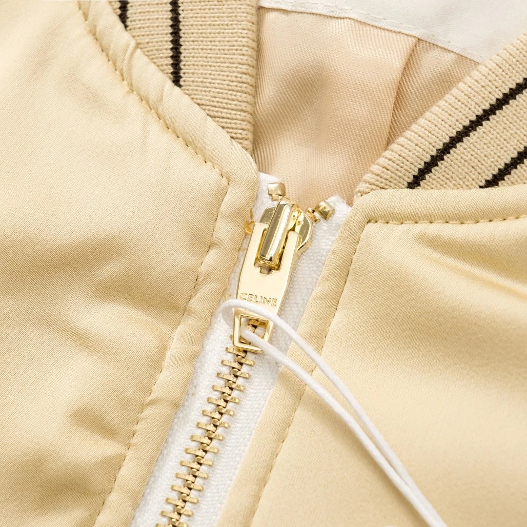 Celine CE Light Gold Back Heavy Embroidered Letter Jacket Coat Unisex Autumn Winter New Sports Casual Loose Versatile