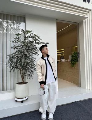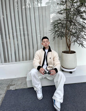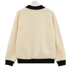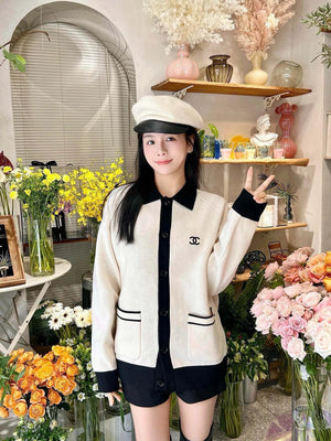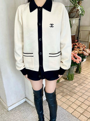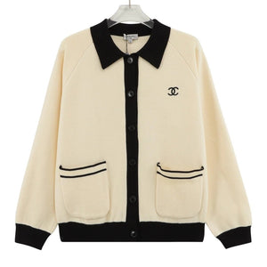 Chanel CC Logo Lapel Contrast Color Knitted Sweater Coat