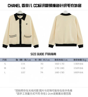 Chanel Jackets Logo Lapel Contrast Color Knitted Sweater Coat size:S-L