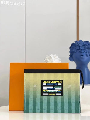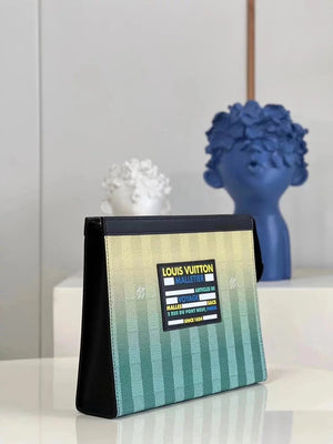 Louis Vuitton LV Wallets/Clutches 【Exclusive Real Shot M81317】This Paragraph PochetteVoyage Clutch Presentation DamierStripes Gradient Color of Canvas,with Leather Trim and New Label,Show the Design Elements of the Brand's Traditional Hard-Side Suitcase.S