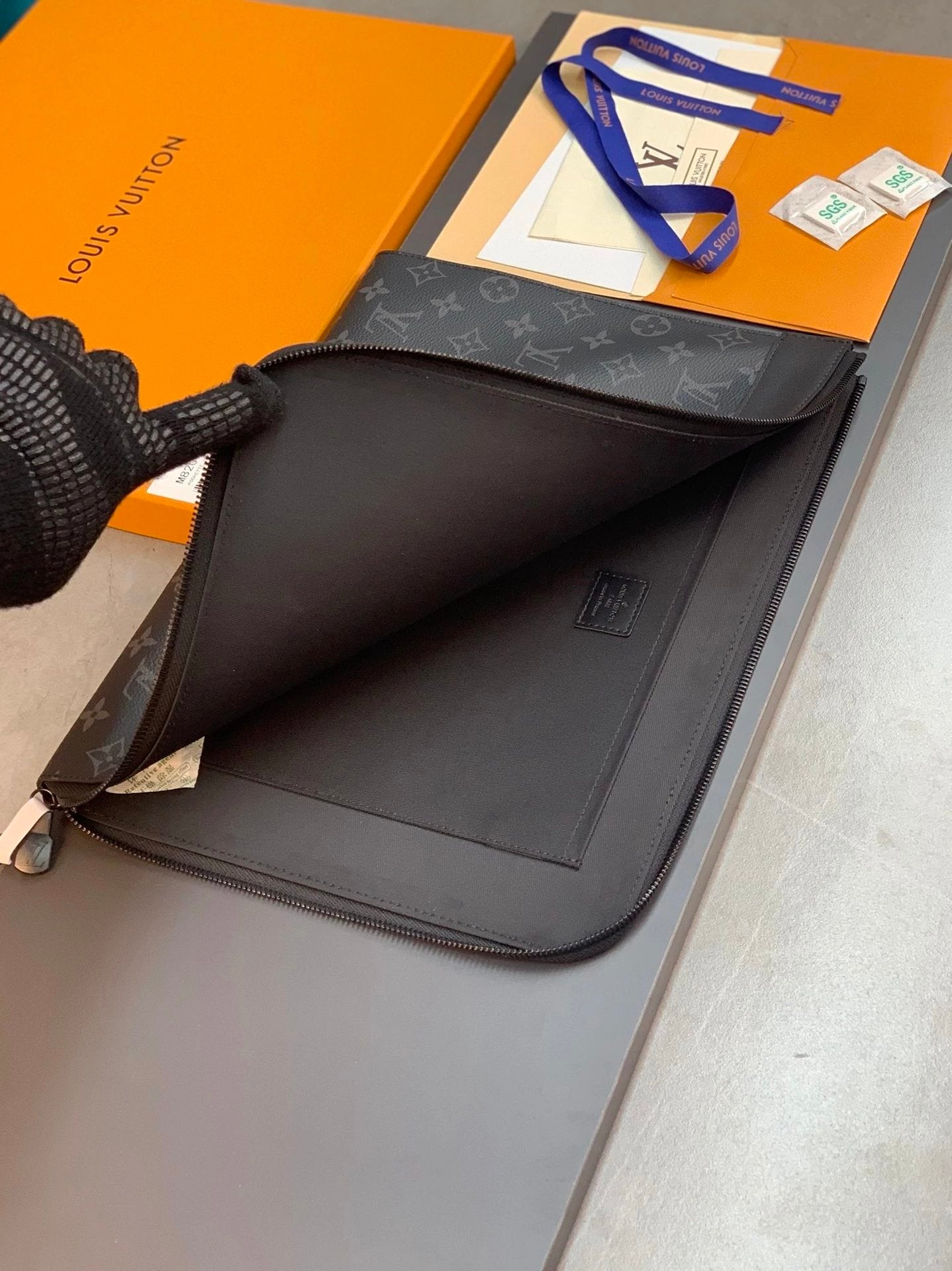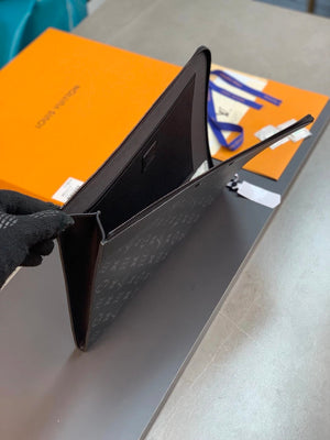 [M81317] This Pochette Voyage Clutch Presents the Gradient Color of Damier Stripes Canvas, with Leather Trim and New Louis Vuitton Label, Showing the Design Elements of the Brand's Traditional Hard-Side Suitcase. There Is Plenty of Space with Card Slots to Easily Store Mobile Phones, Notebooks and Other Needs. Detailed Features 27X21X6cm (Length X Height X Width) M82074 Black Embossed! Pochette Jour Handbag! Can Store Laptop Monogram Eclipse Canvas Trimmed with Black Leather Finished with Black Metal Parts with L-Shaped Zipper Opening Can Take out the Contents Immediately This Is Also Its Charm Can Be Used as a Clutch you Can Also Use Size as a Package: 35X25X2.8cm. Pre-Purchase Instructions