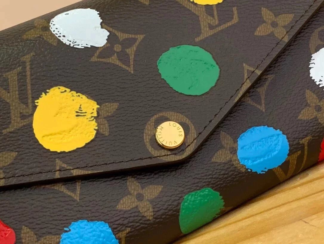 In the Second One Louis Vuitton X Grass MIUSOU Series, Lvxyk Sarah's Wallet Is Lined with the Iconic Dots of This Acclaimed Japanese Artist. Ten Years Ago, after the First Cooperation with the Company in the Grass MIUSOU, She Painted a Trunk with One Happy and Colorful Spots on It. This New Version of Convenient, Multi-Functional Accessories Replicates These Same Dots and Is Screen Printed on Monogram Canvas with Amazing 3D Effect.
