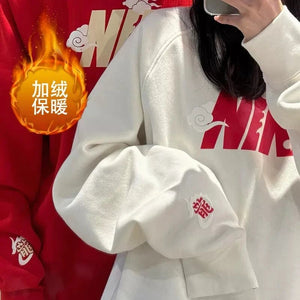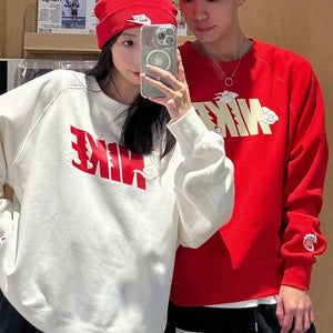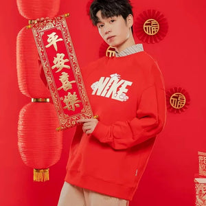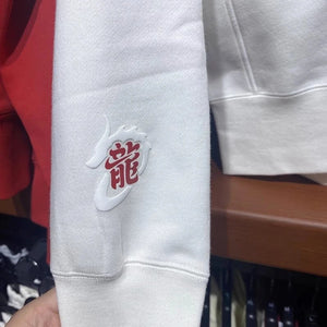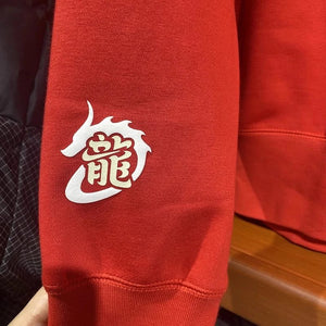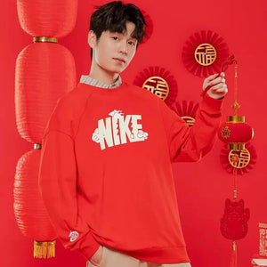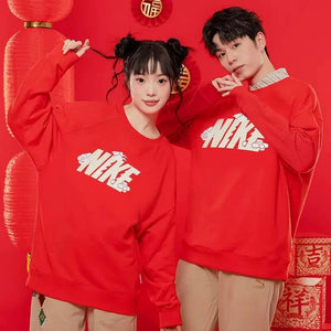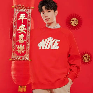 Nike Men's and Women's Dragon Year Limited Red with Velvet Lining Warm Hoodie Sports Leisure Knitted Pure Cotton Breathable Long Sleeves