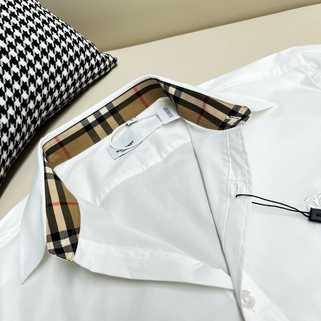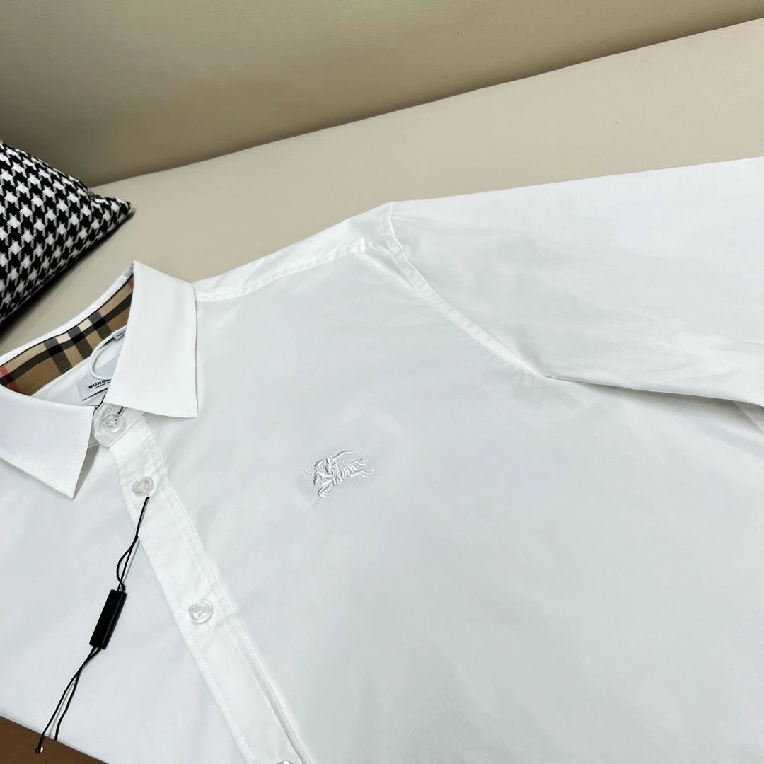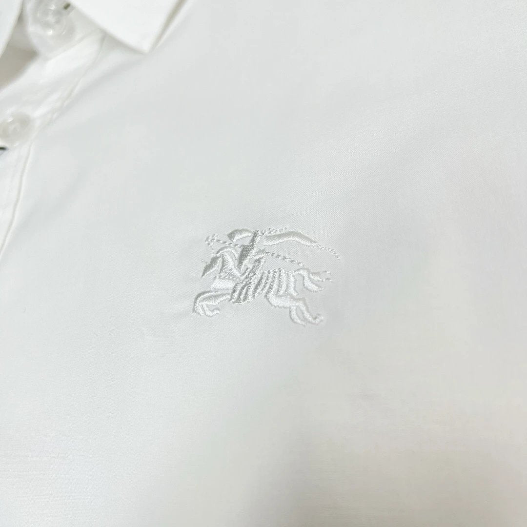 Burberry Shirt Men's Equestrian Knight Embroidered Solid Color Long Sleeve Shirt Unisex Autumn Winter New Arrival
