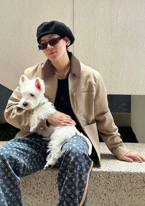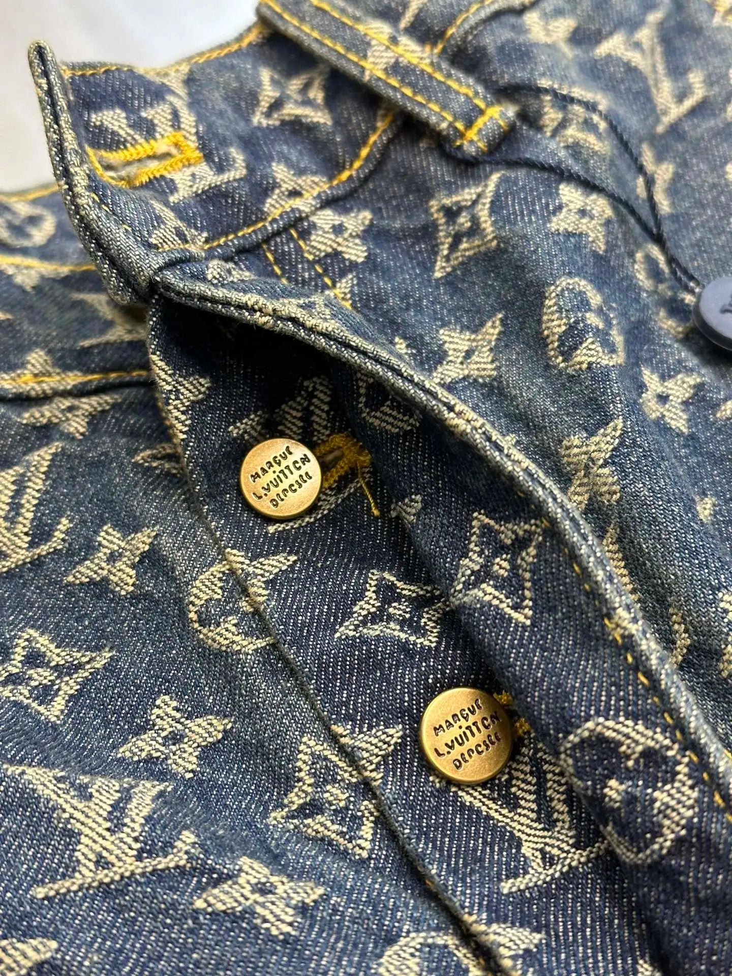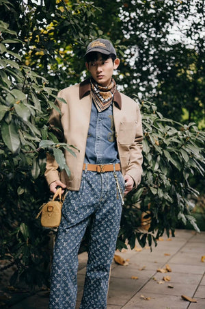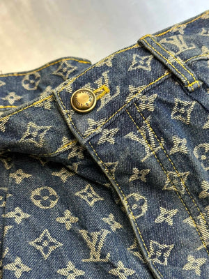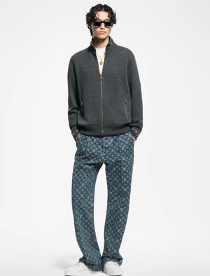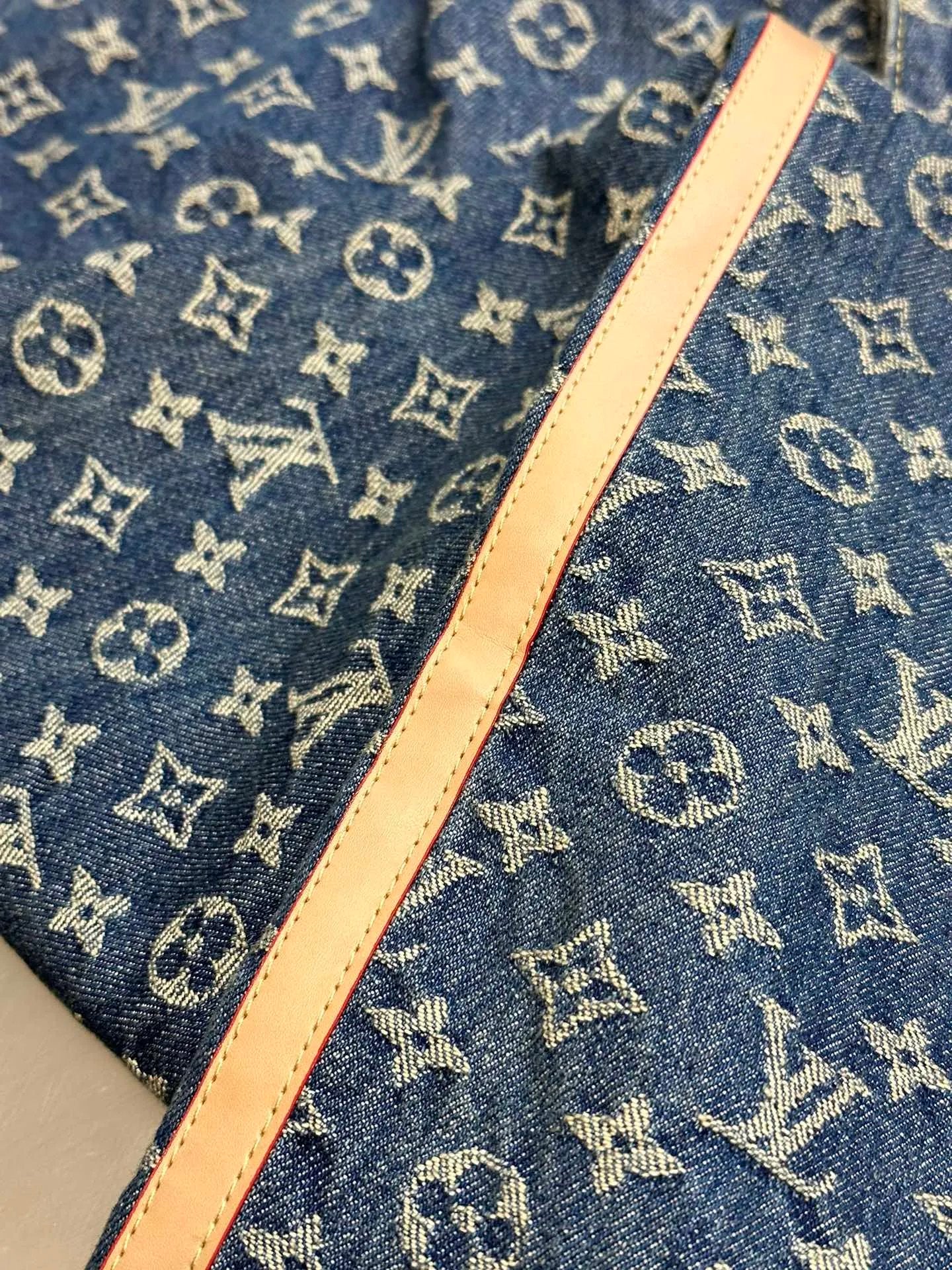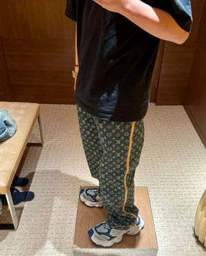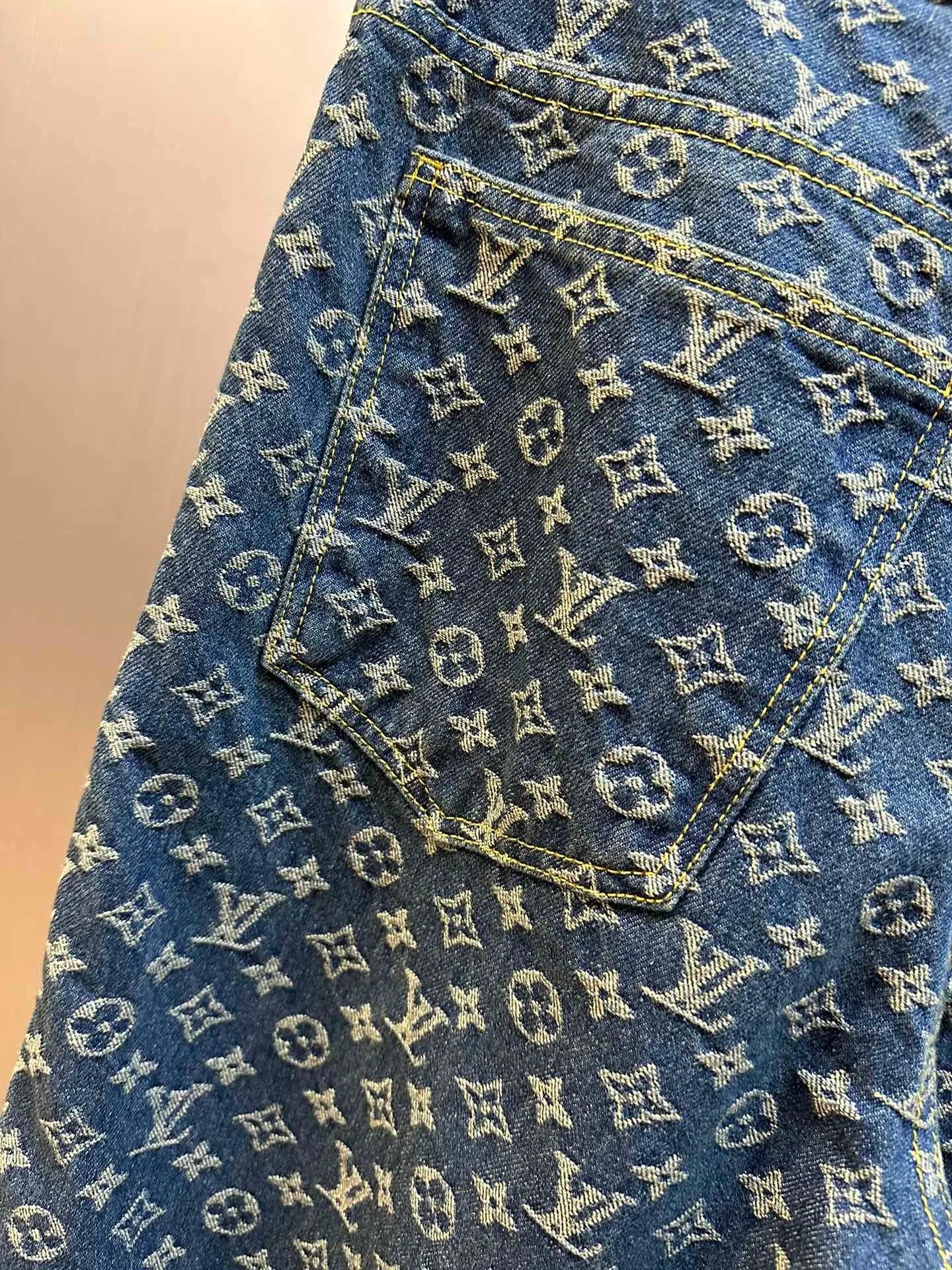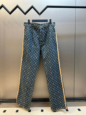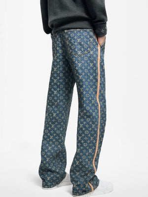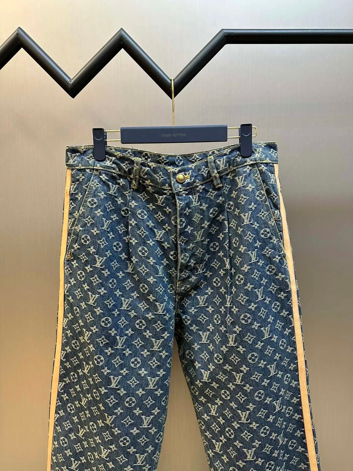 Louis Vuitton LV Jeans Monogram Jacquard Patchwork Jeans Straight Washed Blue Jeans Autumn Winter New Unisex Long Pants Loose Casual Wide Leg High Waist