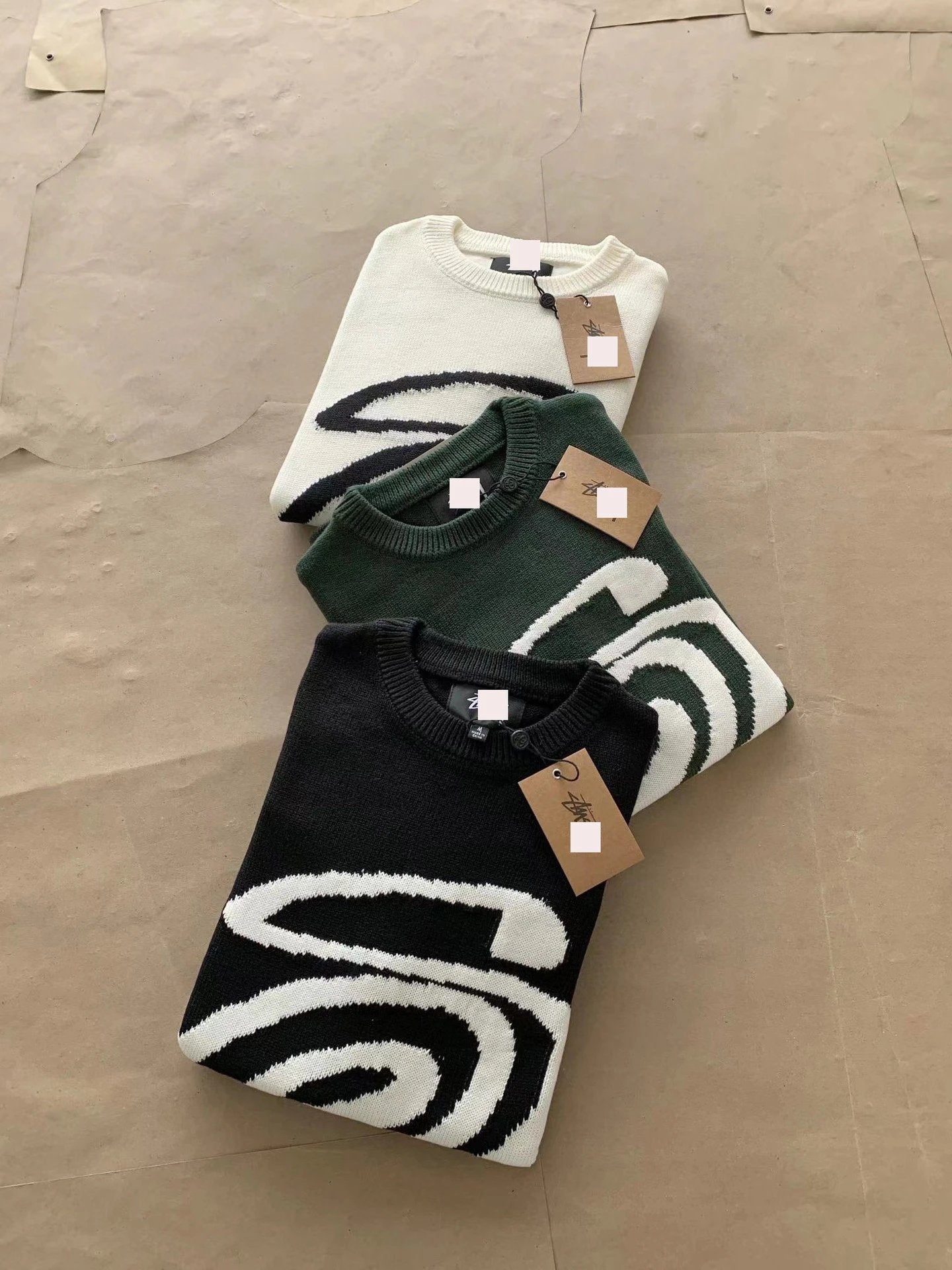 23S Stu New Knitwear Curved Letter Printing Men's and Women's Same Style Sweater Lovers Wild Cotton Long Sleeve Pre-Purchase Instructions