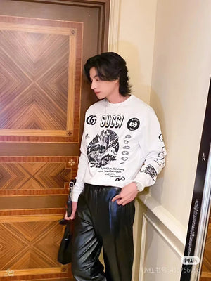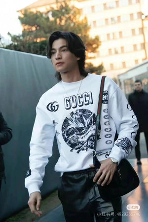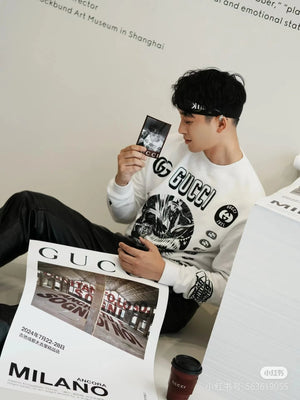 Gucci Hoodie Multi-Detail Micro-Embroidered Crewneck Sweatshirt Long Sleeve Base Shirt Outerwear Trendy Unisex Sports Casual OS Loose Fit Versatile New Autumn Winter Collection