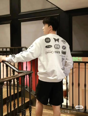 Multiple Detail Micro-Embroidered Crewneck Sweatshirt Long Sleeve Base Shirt Outerwear Trendy Unisex Sports Casual OS Loose Fit Versatile Autumn Winter New Arrival