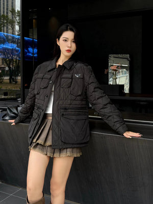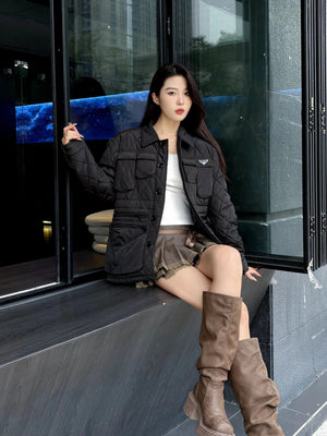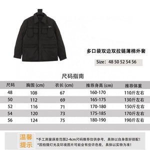 PRADA Down jacket Multi-Pocket Bilateral Double Zipper Thin Cotton Jacket for Men and Women