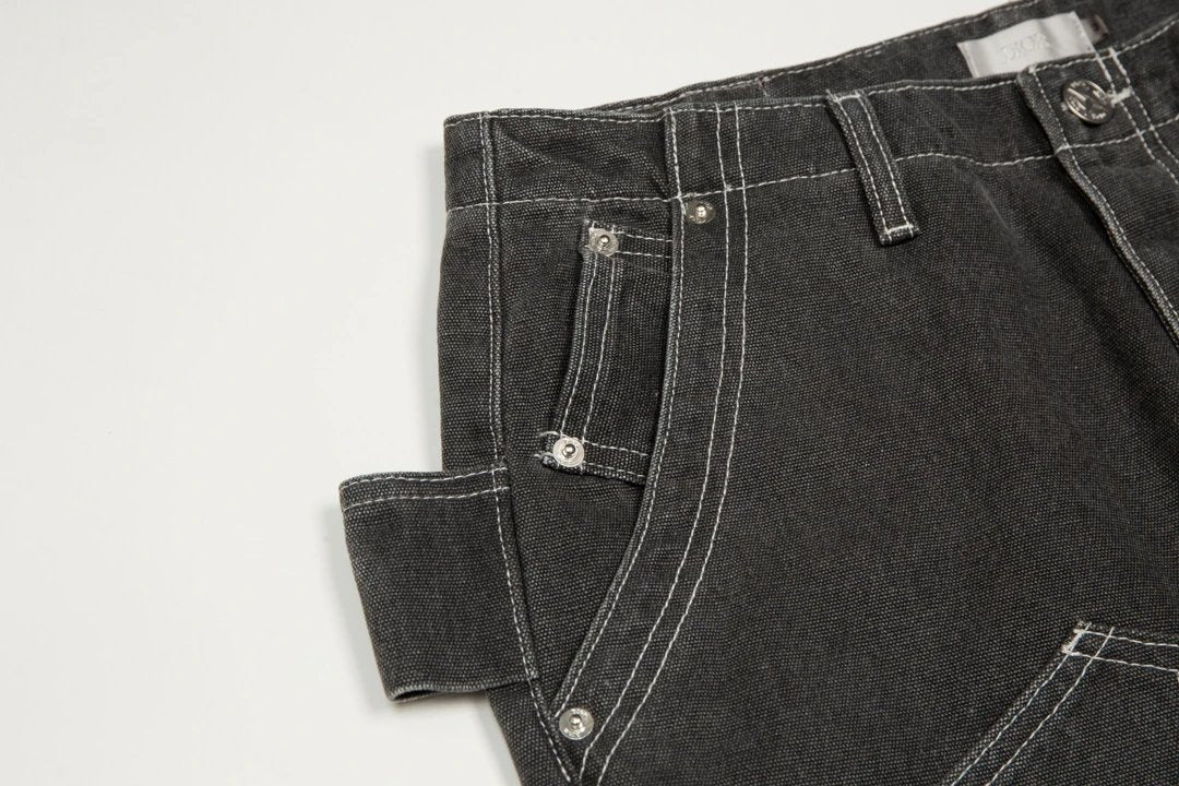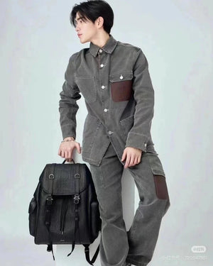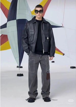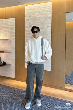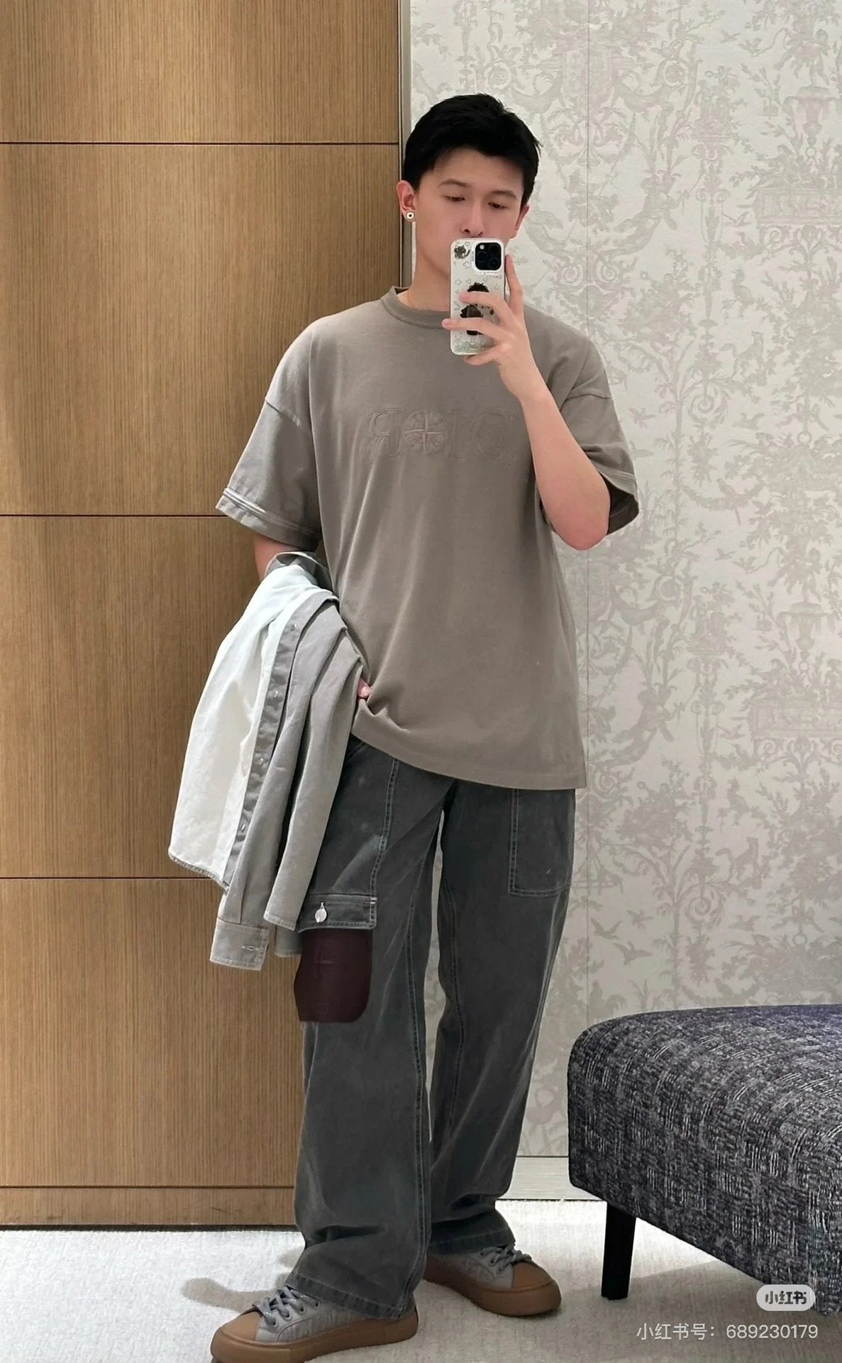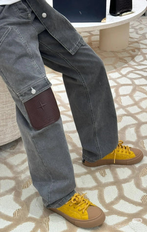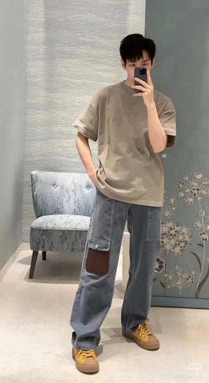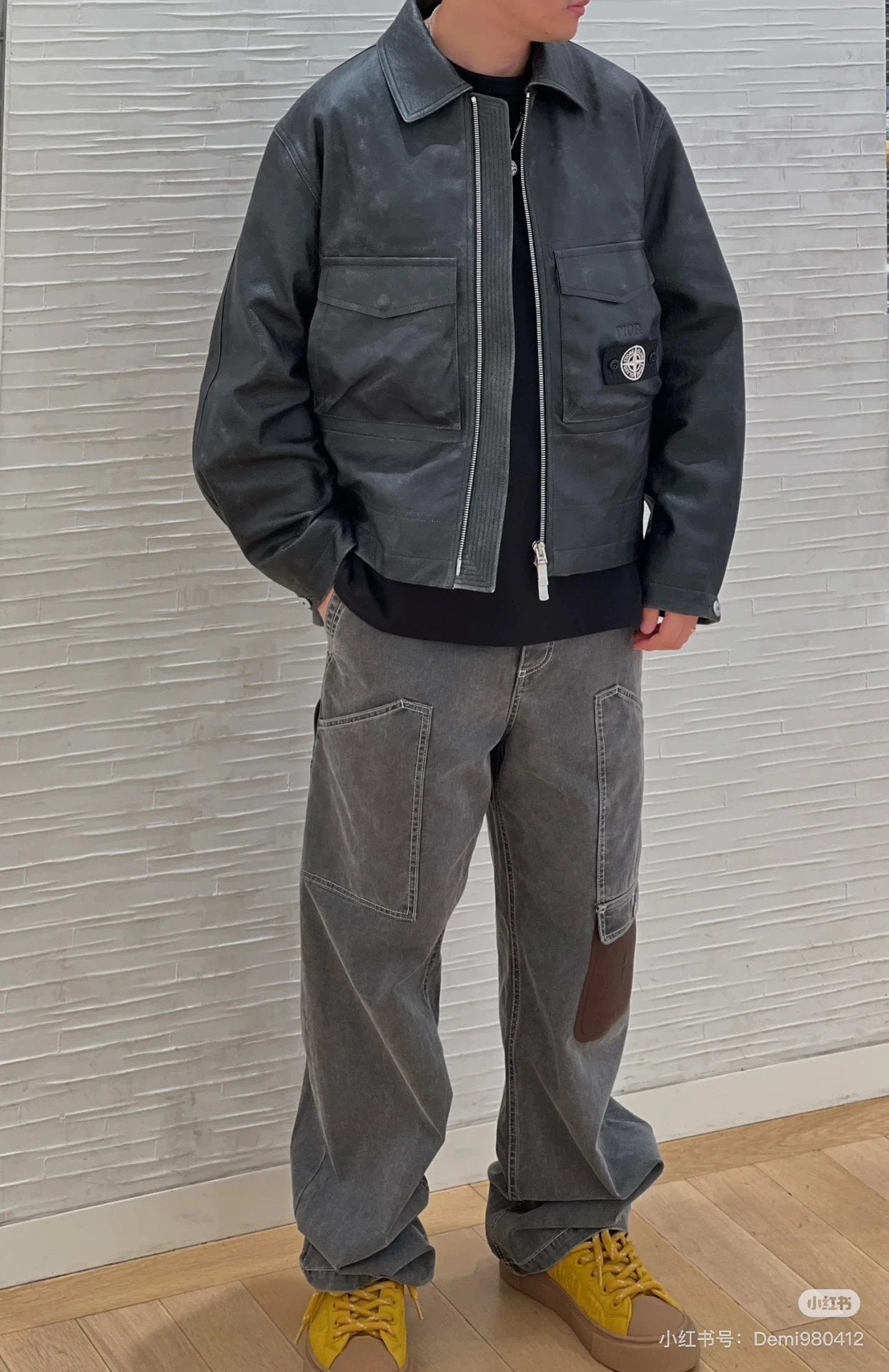 DIOR/Dior CD X Stone Multi-Pocket Leather Patch Jeans Stone Island Collaboration Series. The fabric is made from China's denim base fabric origin, steamed for color fixation, washed, and then shaped into finished fabric. Through washing and sanding, it acquires an aged texture with a natural color transition. Finally, boiling and bleaching solidify the color to achieve an effect consistent with the original version. Stone Island Cross Star Conceptual Embellished Laminated Leather Pocket, Made with Imported Special Machine Infrared Positioning Sewing, Firm and Sturdy. Custom Co-branded Engraved Pattern Buttons, Complete Set of Co-branded Three-label Accessories Included. The multi-pocket cargo jeans design adds more dimensionality and layering while increasing practicality.