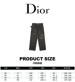Dior Jeans Multi-pocket Leather Patch Jeans Collaboration Series