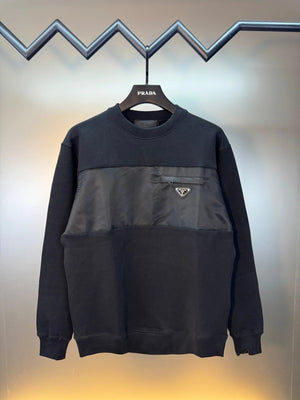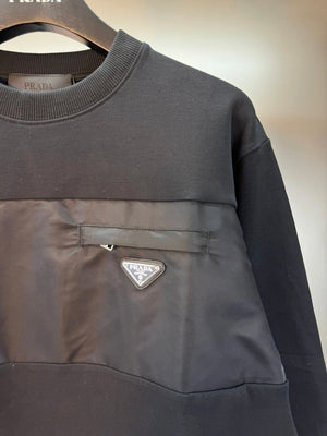 PRADA Hoodie New Classic Metal Triangle Logo Patchwork Craft Round Neck Sweatshirt Long Sleeve Base Shirt Jacket Top Fashion Unisex Sports Casual Loose Versatile Autumn Winter New Arrival