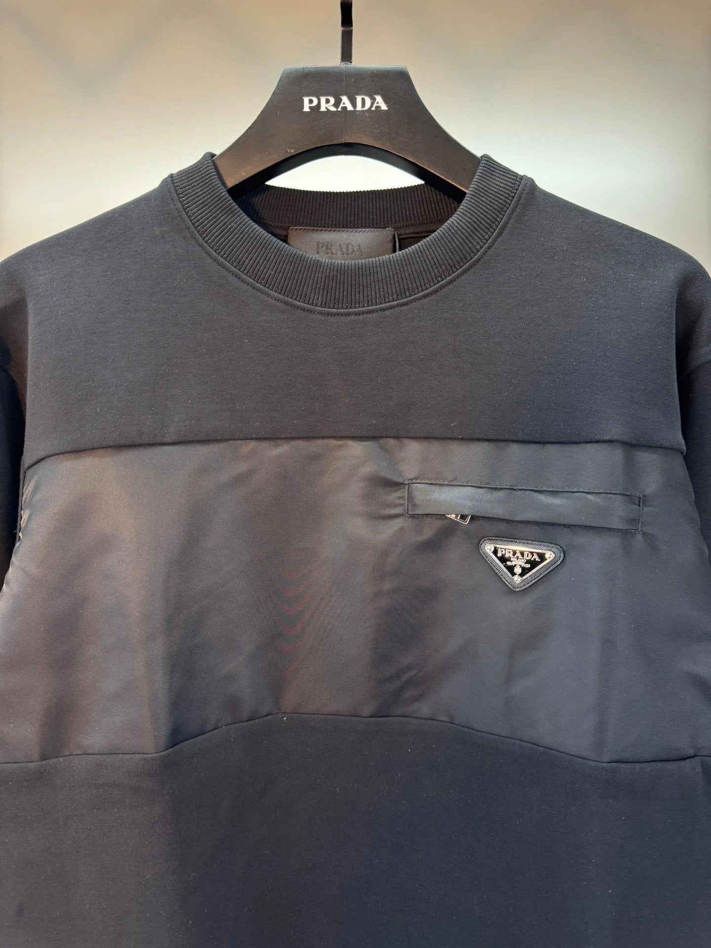 Prada New Classic Metal Triangle Logo Patchwork Craft Crewneck Sweatshirt Long Sleeve Base Shirt Jacket Top Fashion Unisex Sports Casual Loose Versatile Autumn Winter New Arrival