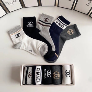Chanel Sock New Classic Mid-Length Bunching Socks Socks!Five Pairs Per Box,Counter Synchronous Tube Socks