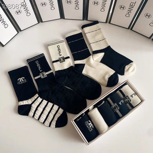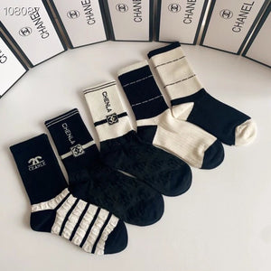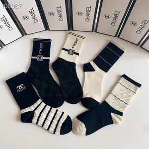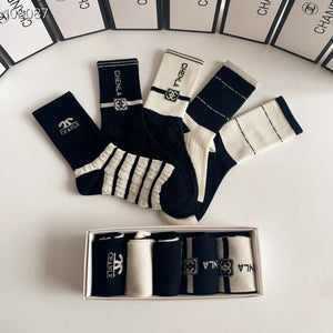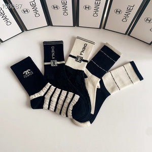 Chanel Sock New Classic Mid-Length Bunching Socks Socks!Five Pairs Per Box,Counter Synchronous Tube Socks
