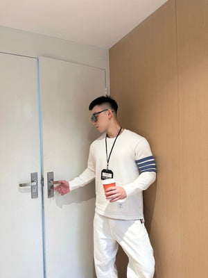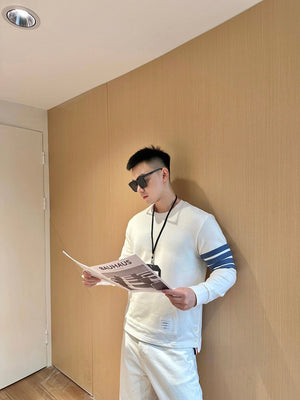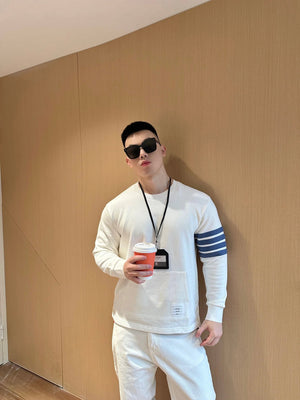 Thom Browne Hoodie New Four-Bar Yarn-Dyed round Neck Sweater for Men and Women