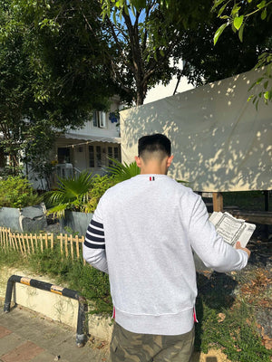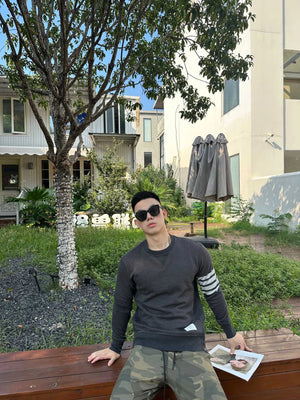 Thom Browne Hoodie New Four-Bar Yarn-Dyed round Neck Sweater for Men and Women