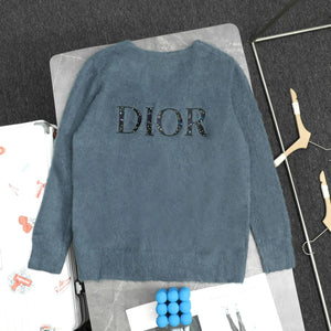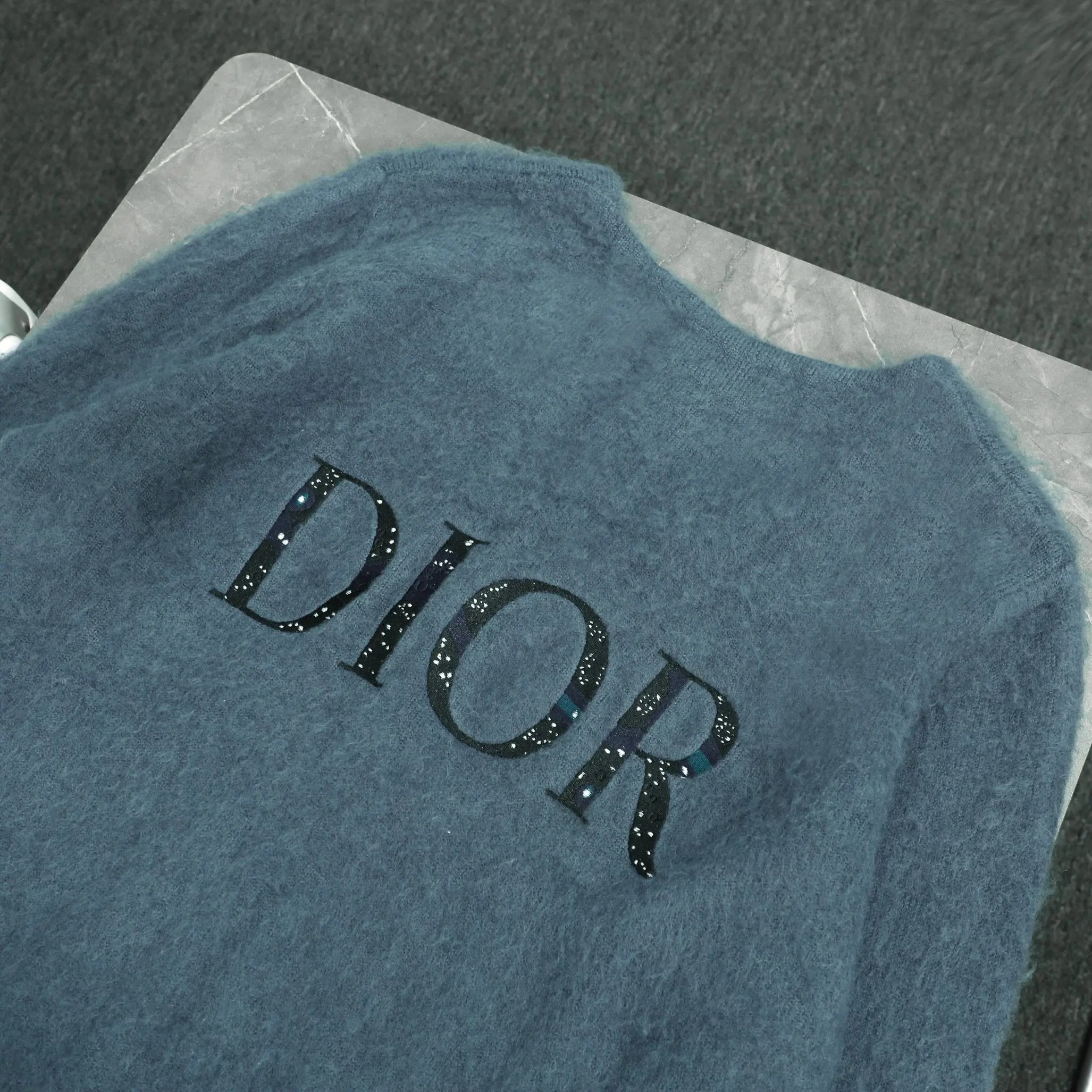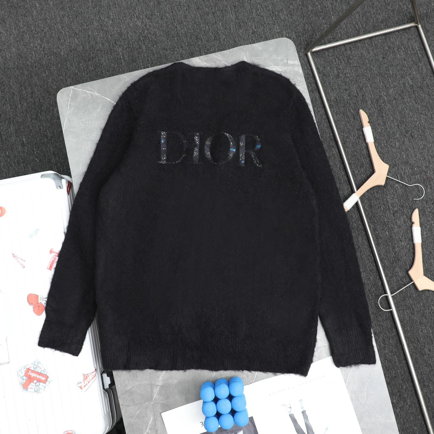 Dior Sweater New Heavy Industry Mohair Embroidery Logo Cardigan Sweater Coat for Men and Women Same Style Outerwear Top Long Sleeve Soft Glutinous Lazy Sweater Thickened Outer and Inner Wear Versatile Casual