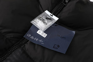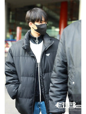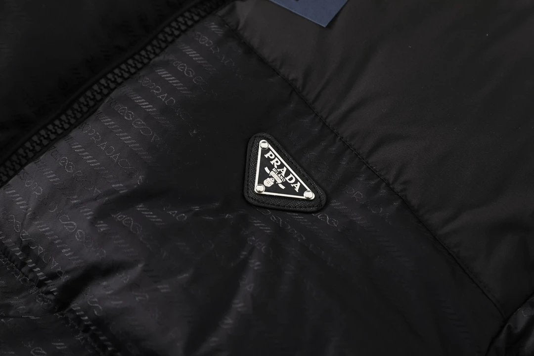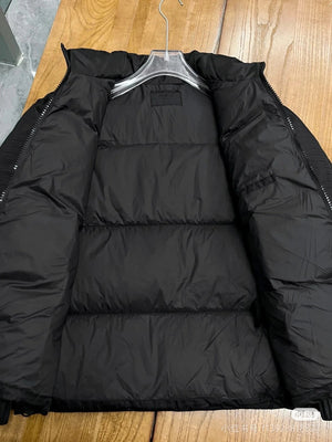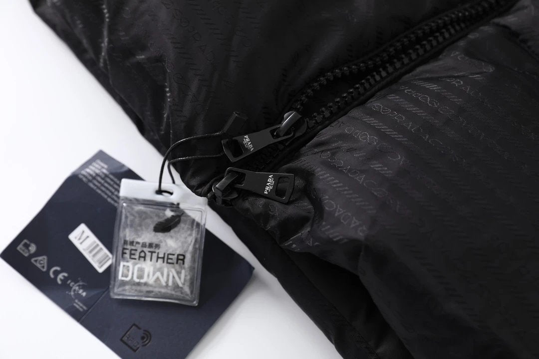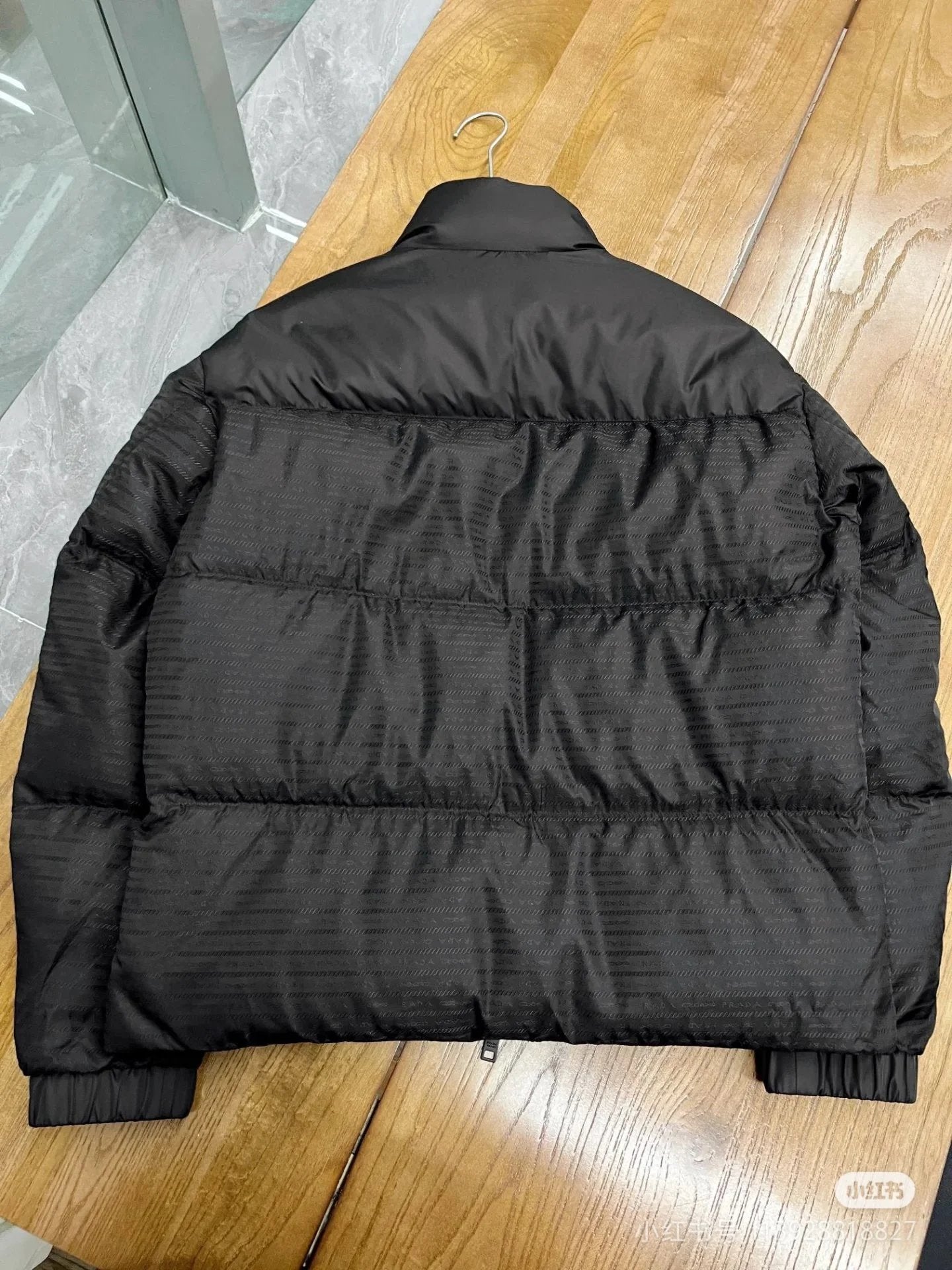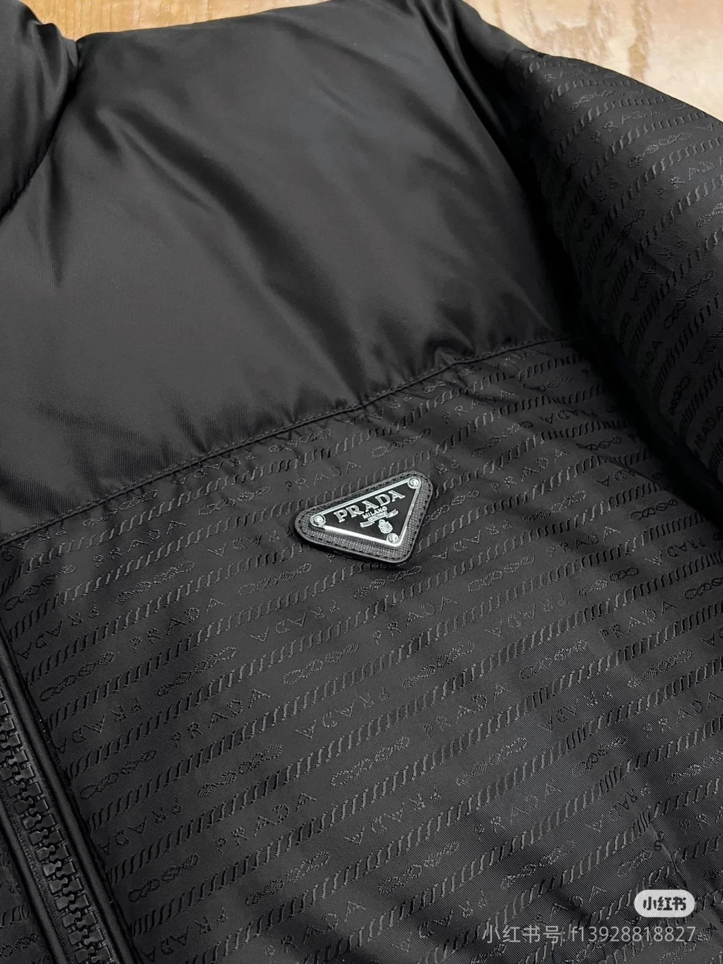 Prada down jacket New Metal Triangle Badge logo Stand Collar Full Print Patchwork Down Jacket Coat Unisex
