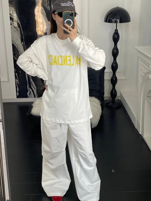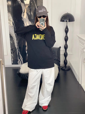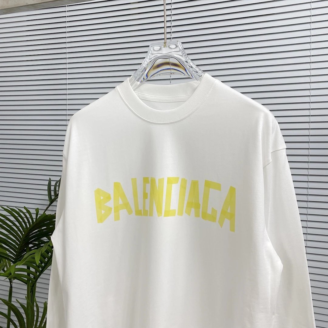Balenciaga Hoodie New Style Tape Letter Print Long Sleeve T Round Neck Sweatshirt Long Sleeve Base Shirt Jacket Top Fashion Unisex Sports Casual Loose Fit Versatile Autumn Winter New Arrival