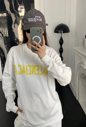 Paris BLCG New Tape Letter Print Long Sleeve T-Shirt B Family Crew Neck Sweatshirt Long Sleeve Base Shirt Jacket Top Fashion Unisex Sports Casual Loose Versatile Autumn Winter New Arrival Pre-Purchase Instructions