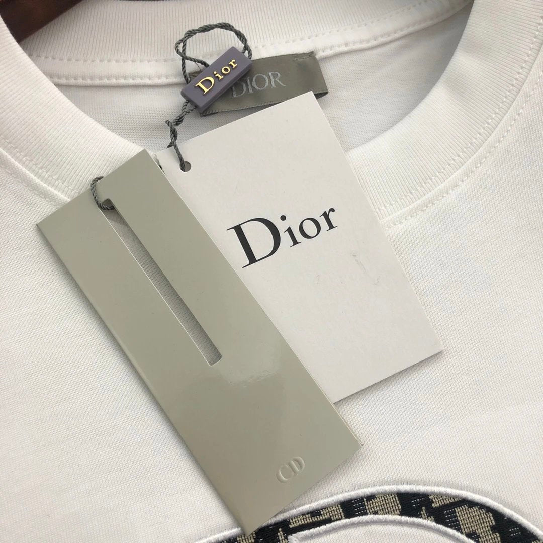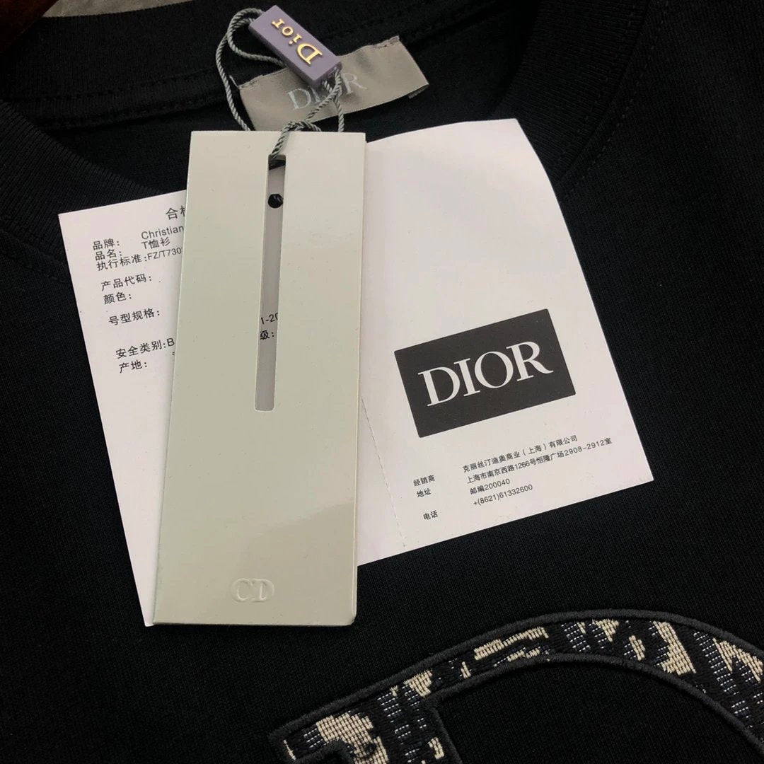 Dior T-shirt Old Flower Patch on Chest logo round Neck Short Sleeve25ss New Pure Cotton Unisex Style T Casual T-Shirt Base Layer Shirt OS Loose design