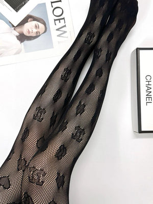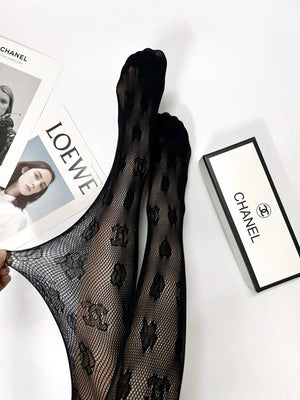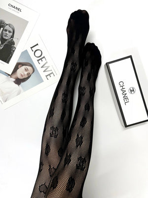 Chanel Sock【One box, one pair】Full-width Floral logo Trendy Breathable Fishnet Tights25ss New Cotton Socks Spring Summer Autumn Thin Business Deodorant Sweat-Absorbing Sports Casual Versatile