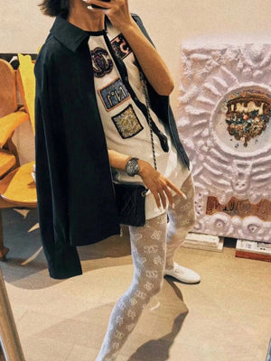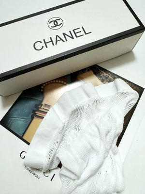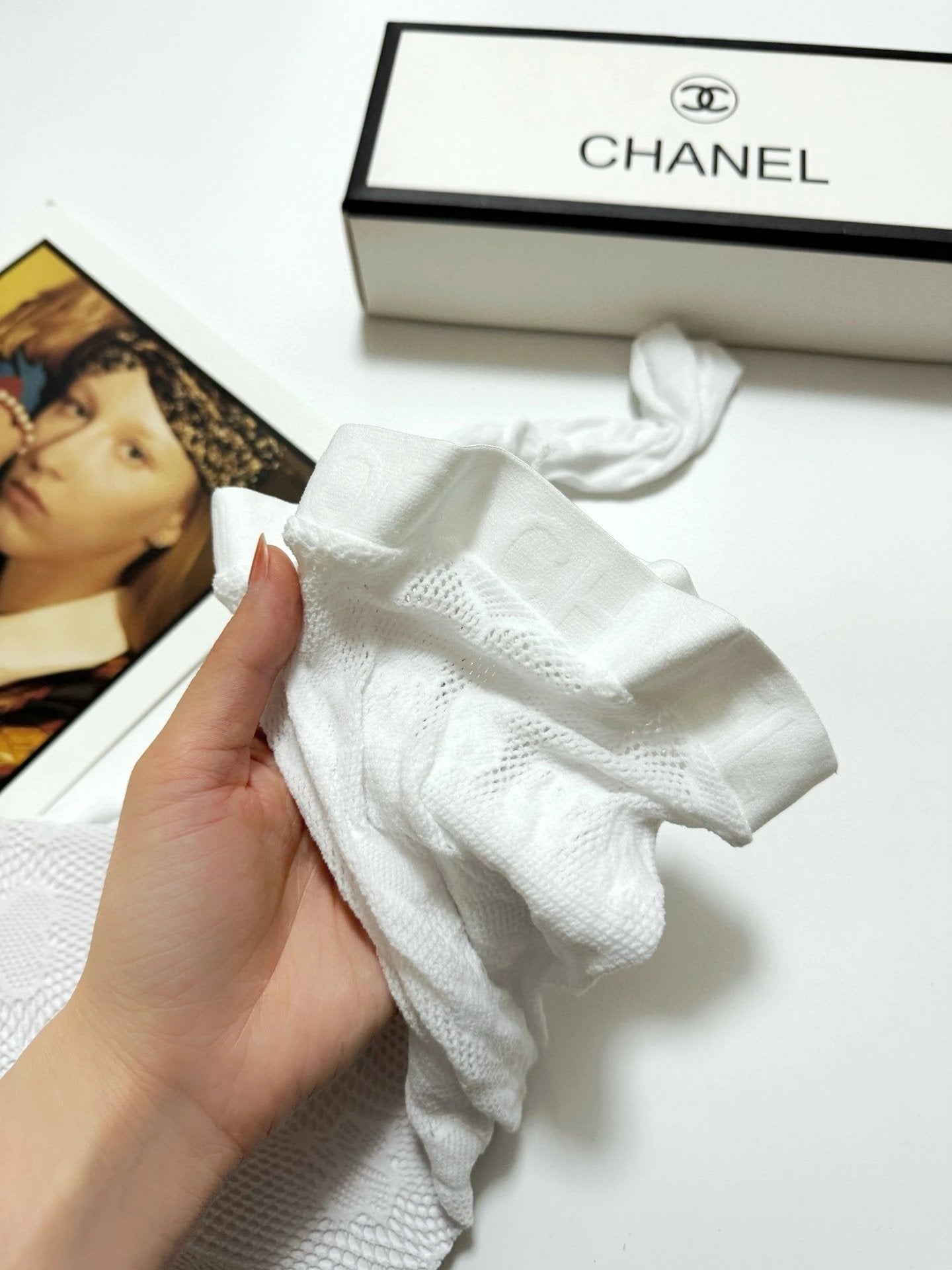Chanel Sock【One box, one pair】Full-width Jacquard logo Trendy Breathable Fishnet Tights25ss New Cotton Socks Spring Summer Autumn Thin Business Sports Casual Versatile Deodorant Sweat-Absorbing