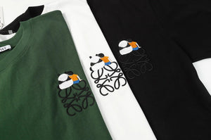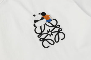 LOEWE T-shirt Panda Embroidery logo Round neck short-sleeve pure cotton T Unisex T-Shirt OS Loose Fit Base Shirt Summer New Casual Simple T-Shirt