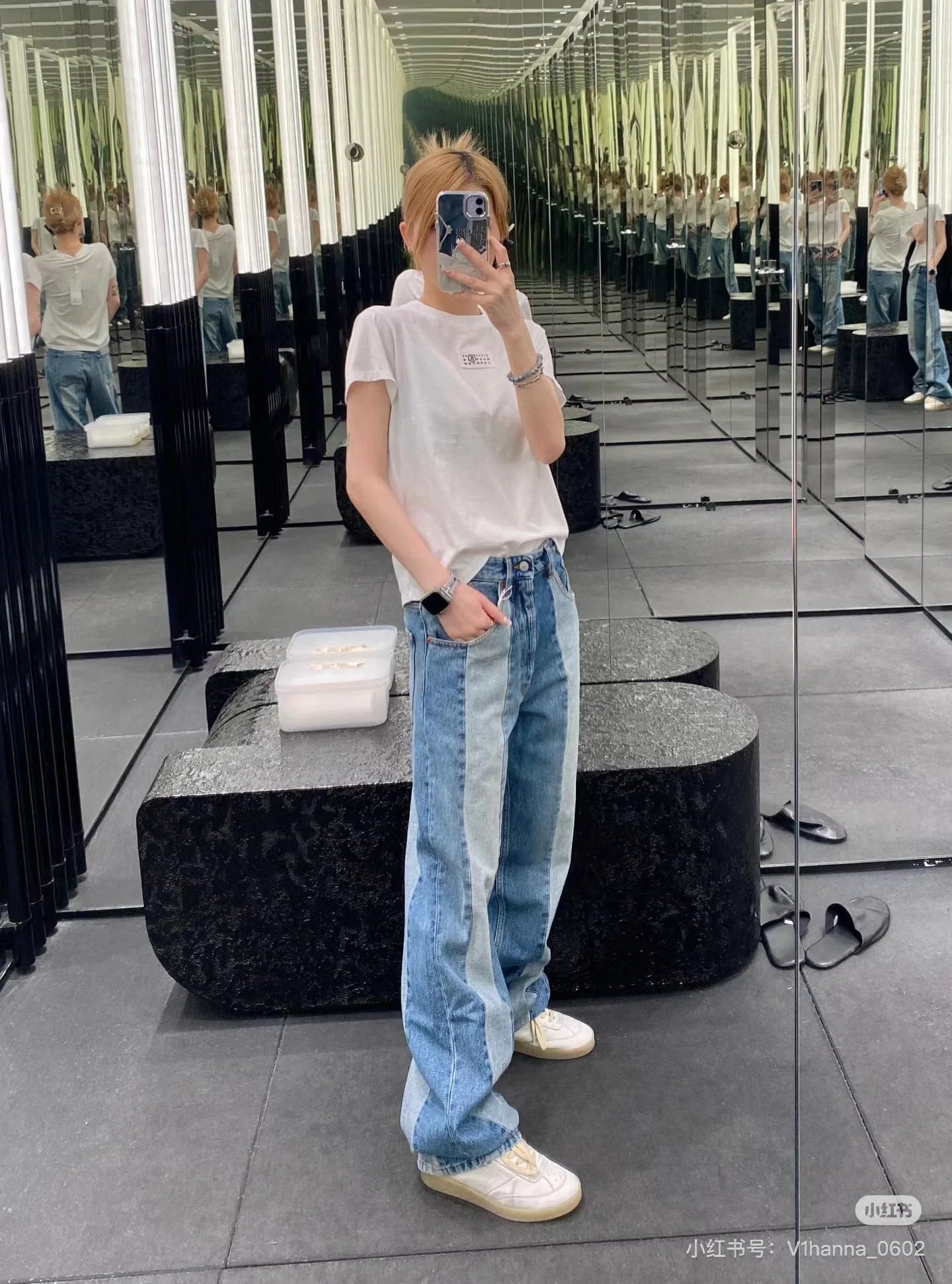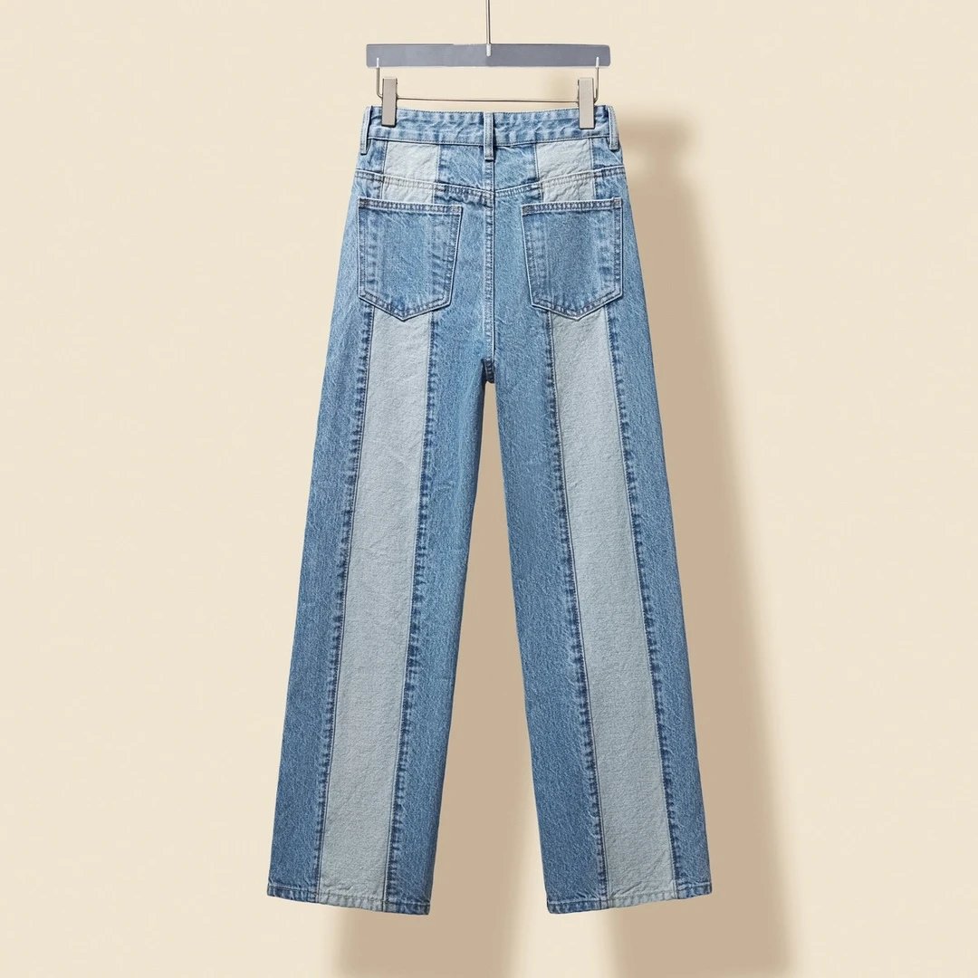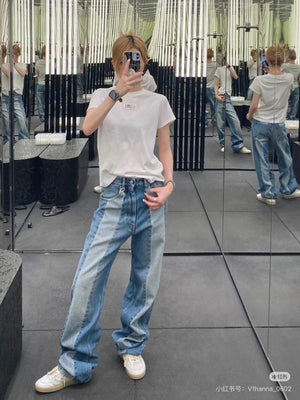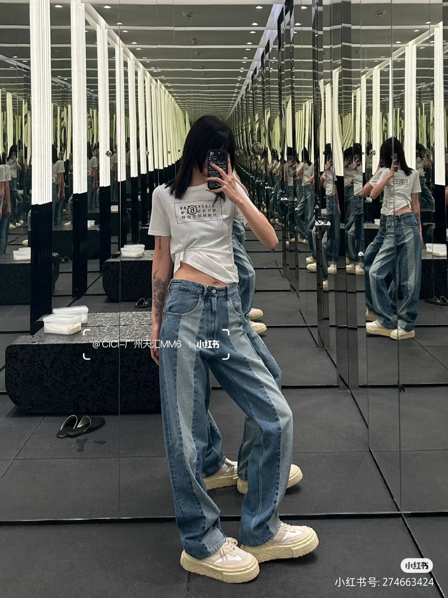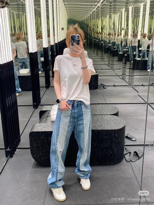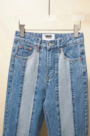 Maison Margiela Jeans Patchwork Color Denim Straight-Leg Pants for Women Versatile Casual