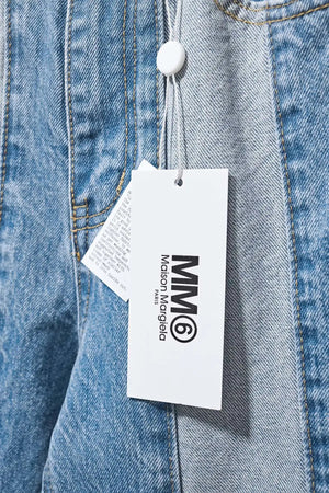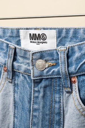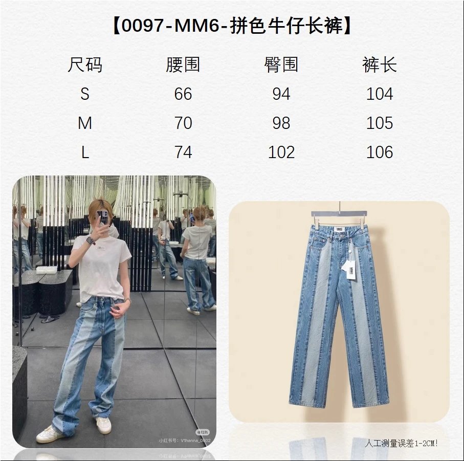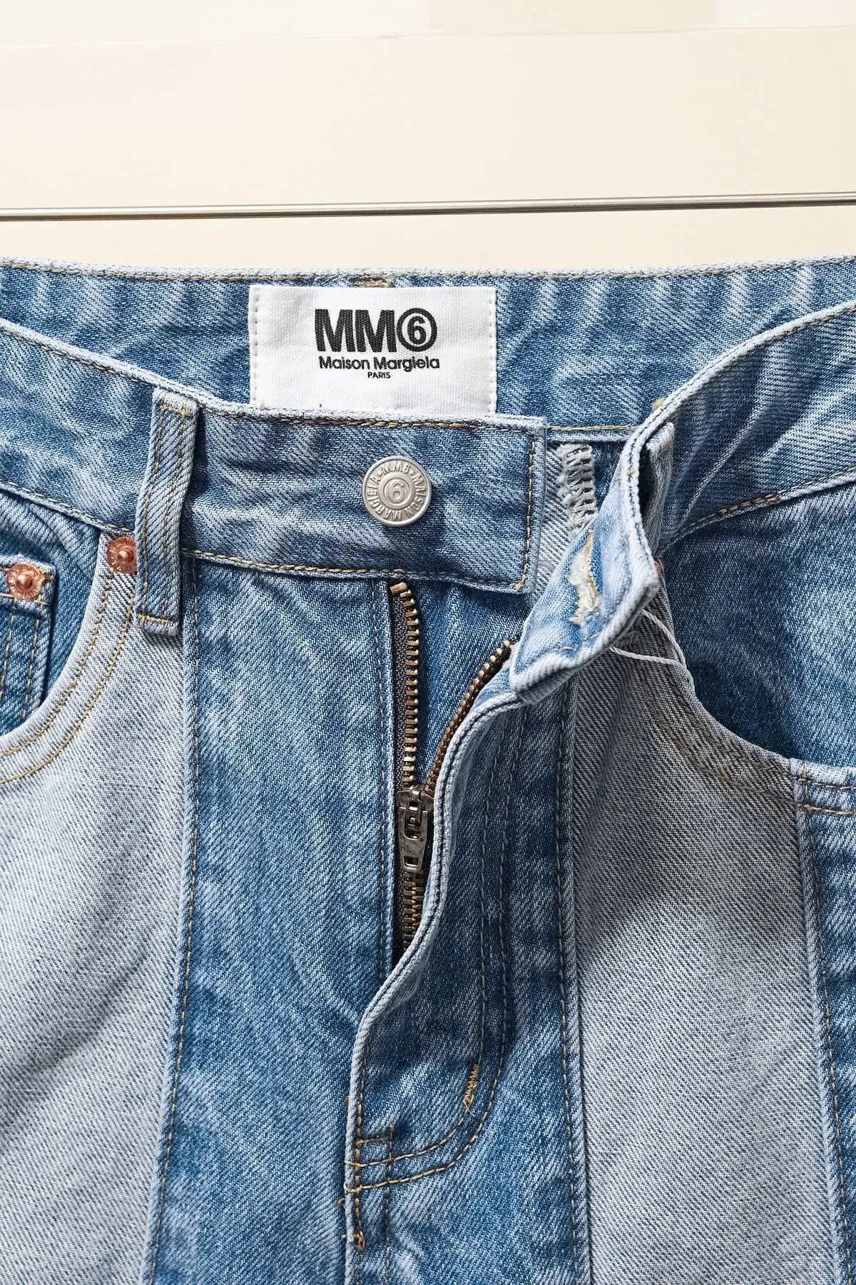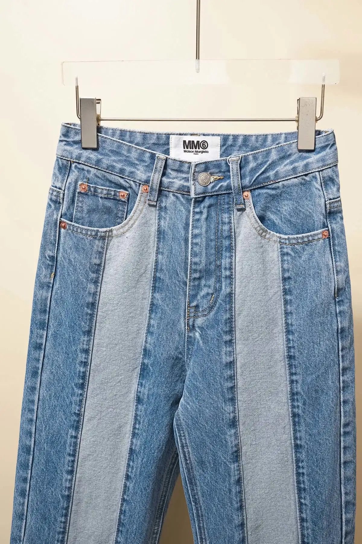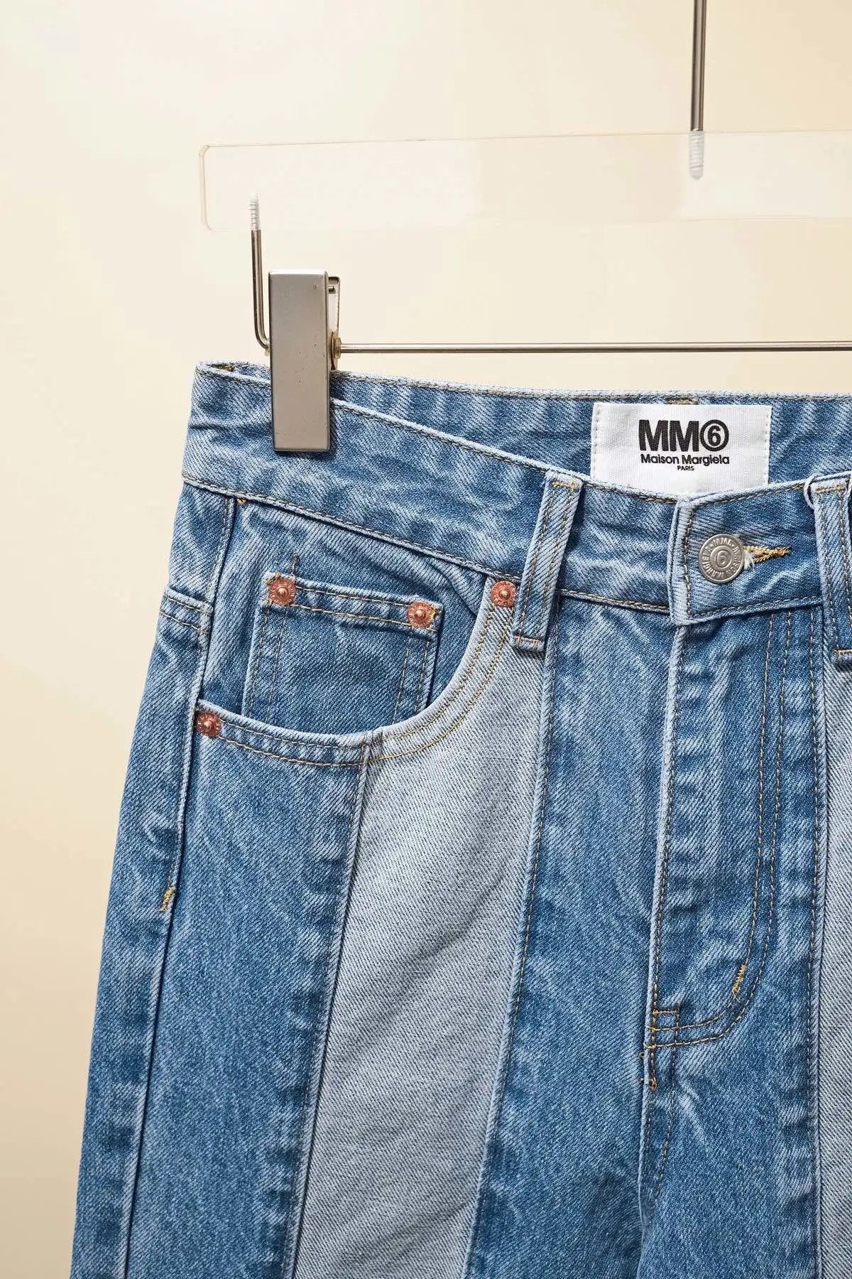 Top Version MM6 Margiela Patchwork Color Denim Straight-Leg Pants Women Versatile Casual
