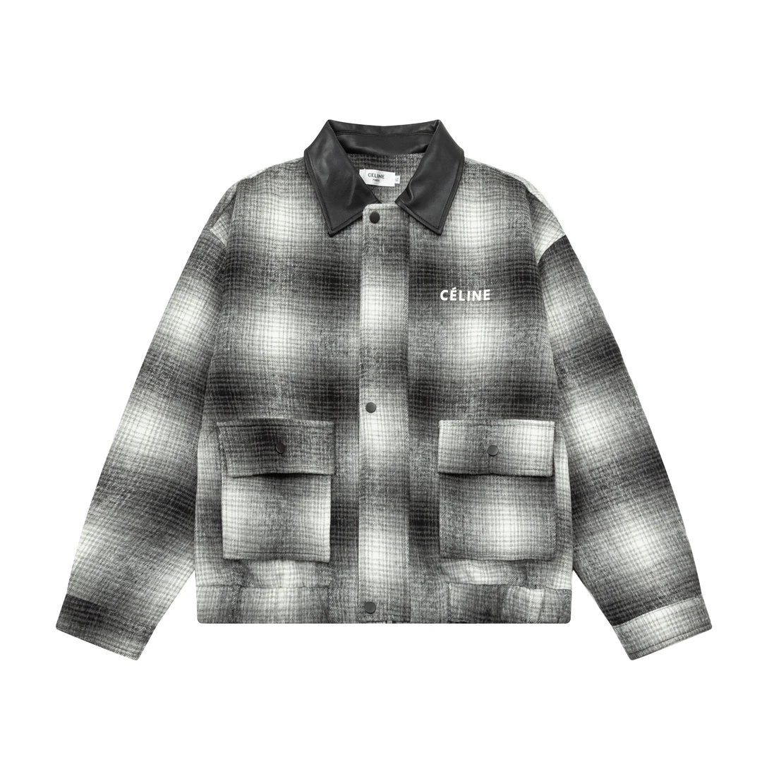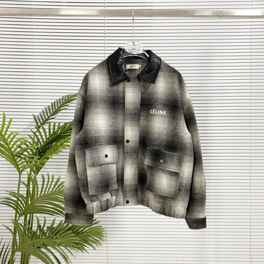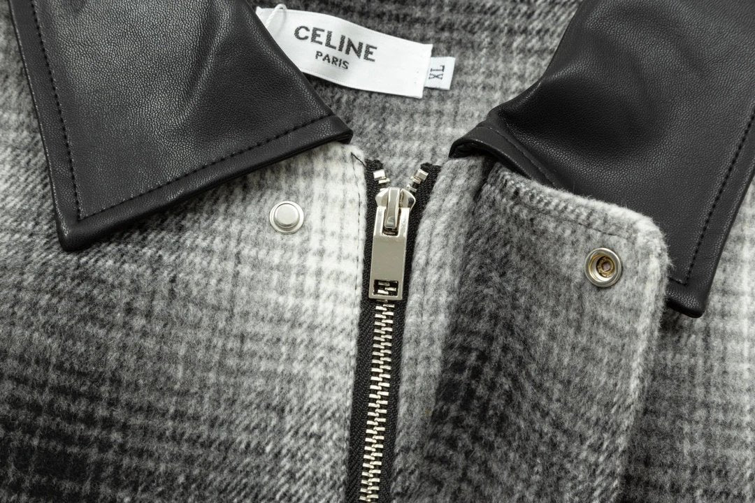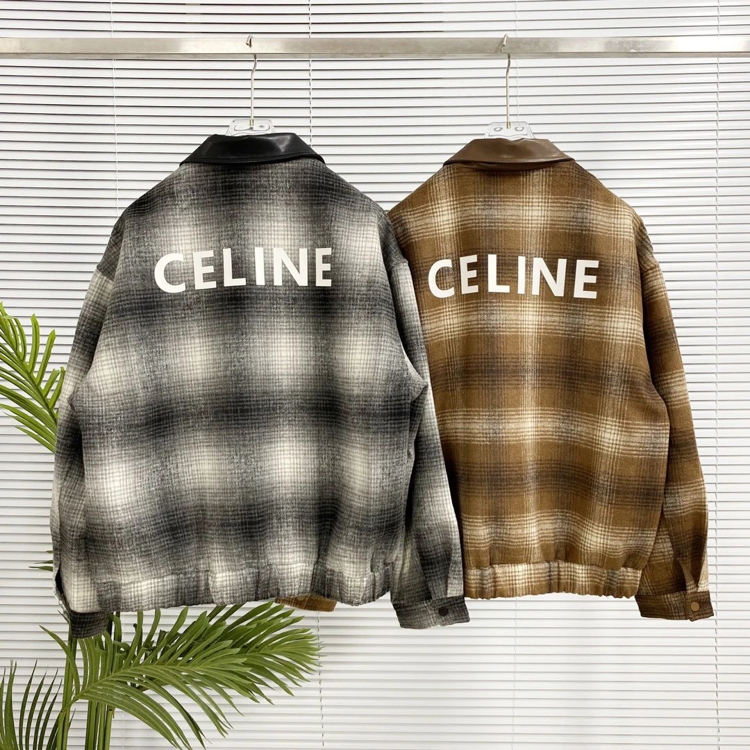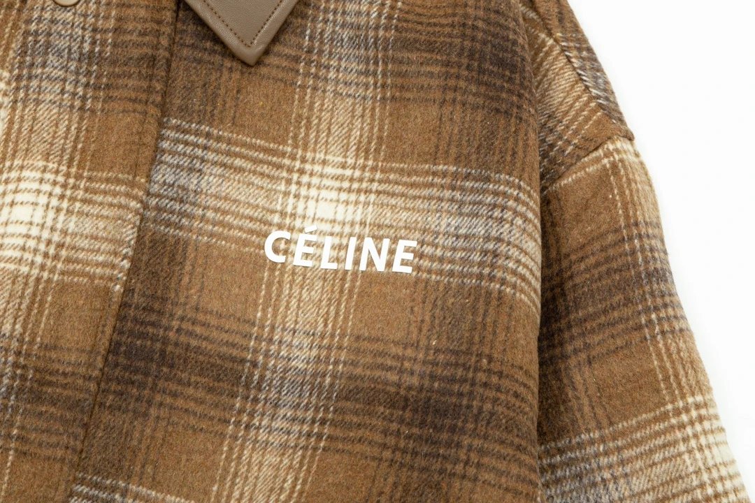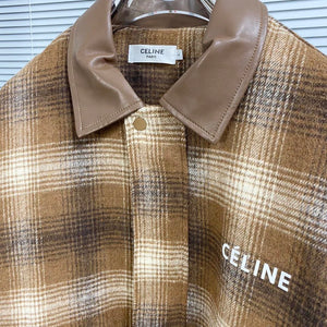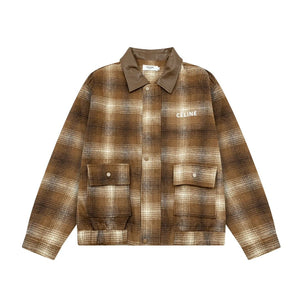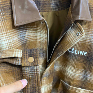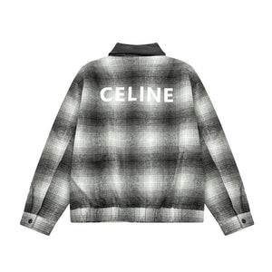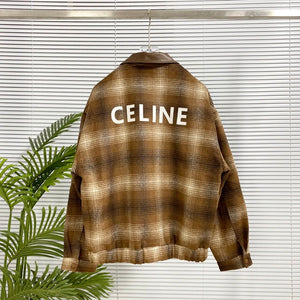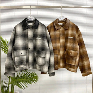 Celine Jackets Patchwork Plaid Wool Jacket Coat Unisex Winter Warm Thickened Turn-down Collar Versatile Casual Large Back logo