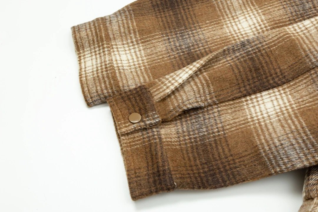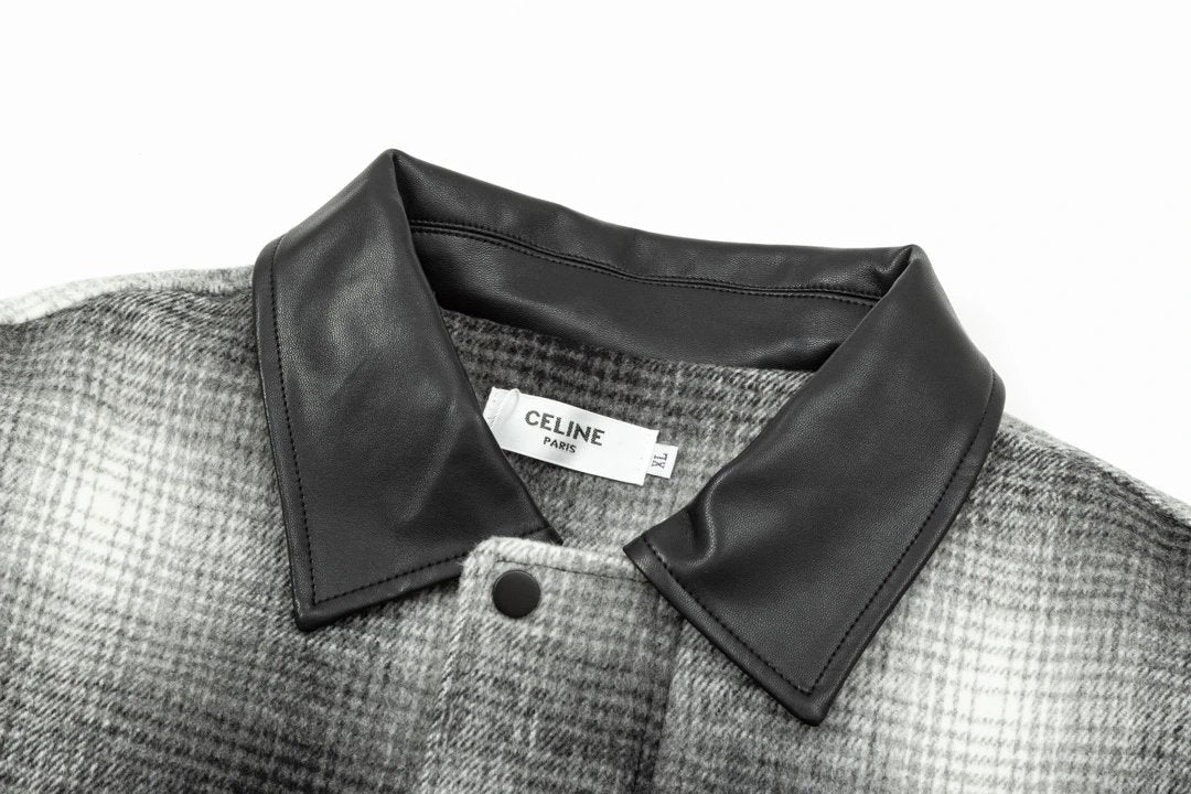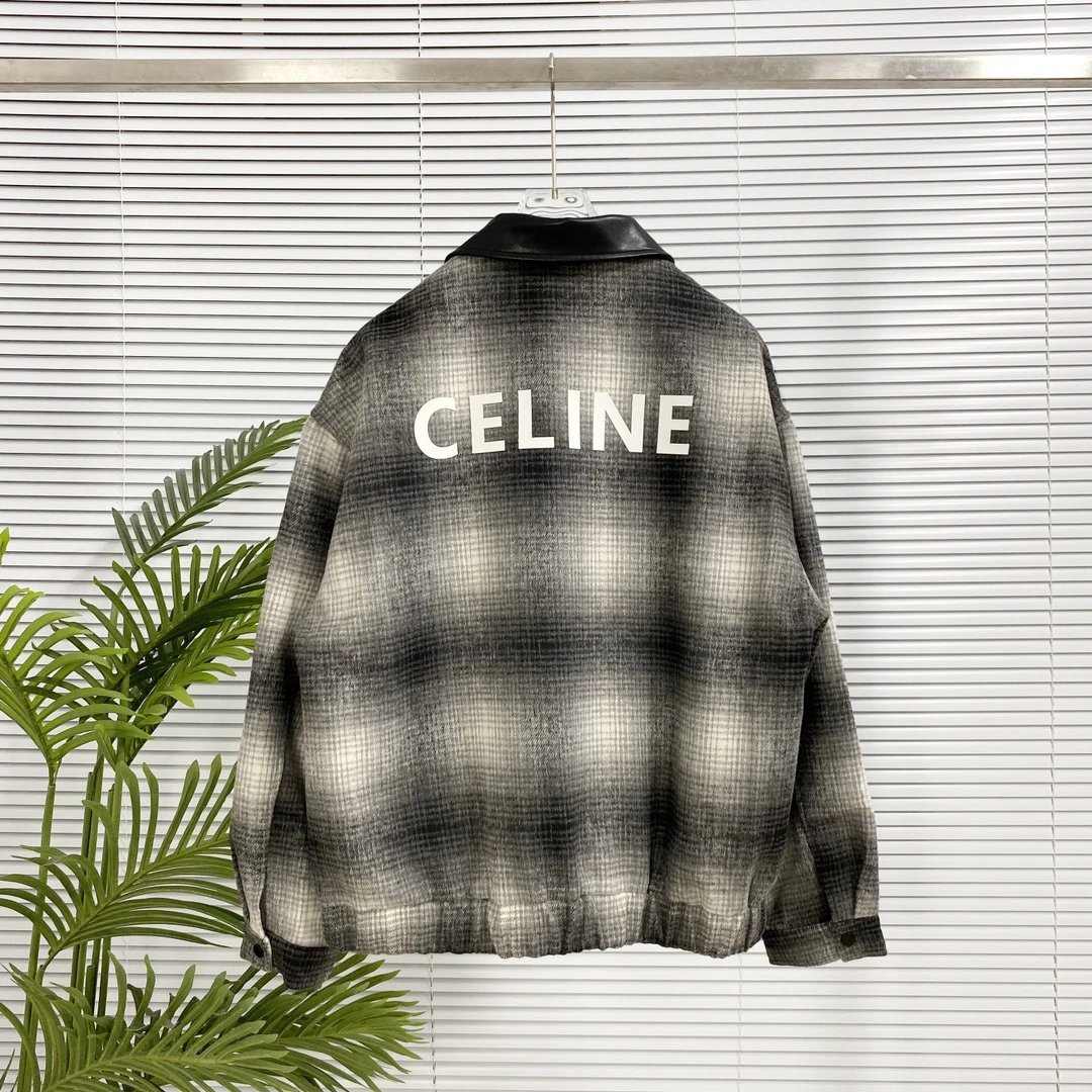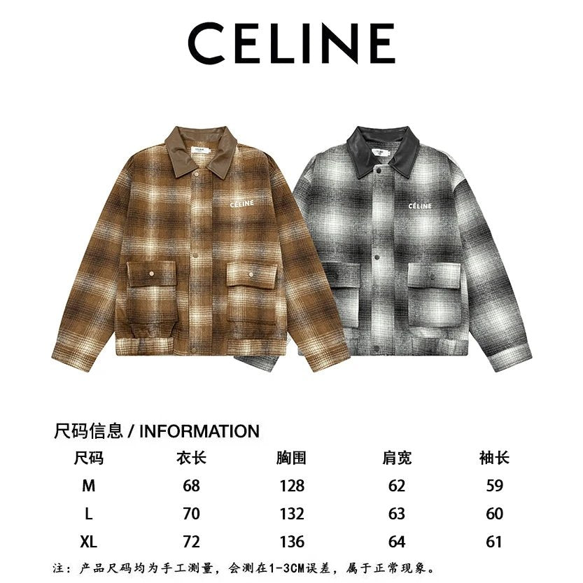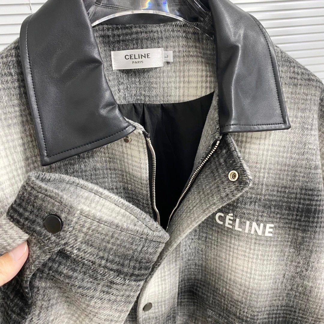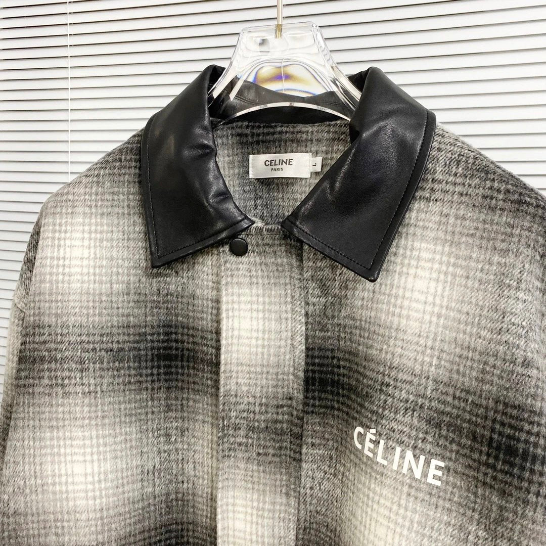 Celine Jackets Patchwork Plaid Wool Jacket Coat Unisex Winter Warm Thickened Turn-down Collar Versatile Casual Large Back logo