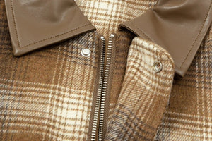 Celine Patchwork Plaid Wool Jacket Coat Unisex Winter Warm Thickened Turn-down Collar Versatile Casual Large Logo on Back Pre-purchase Instructions