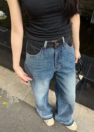 Top Version Ce*ine Sailin Patchwork Waistband Denim Long Pants Women Versatile Casual