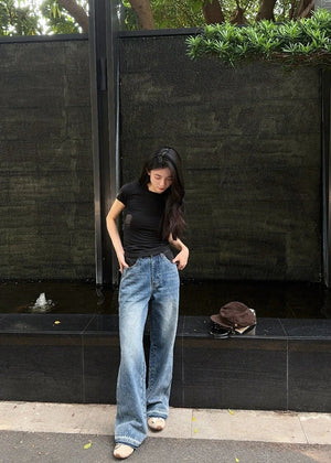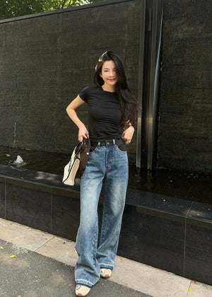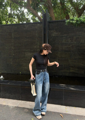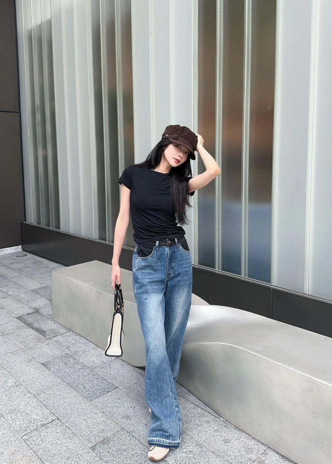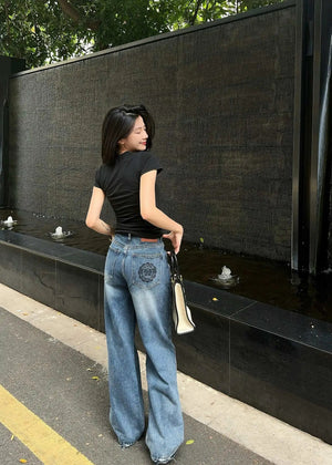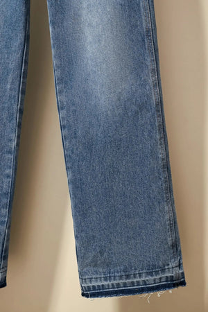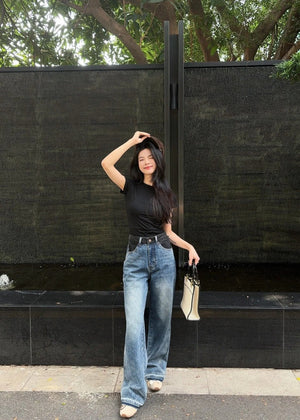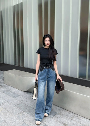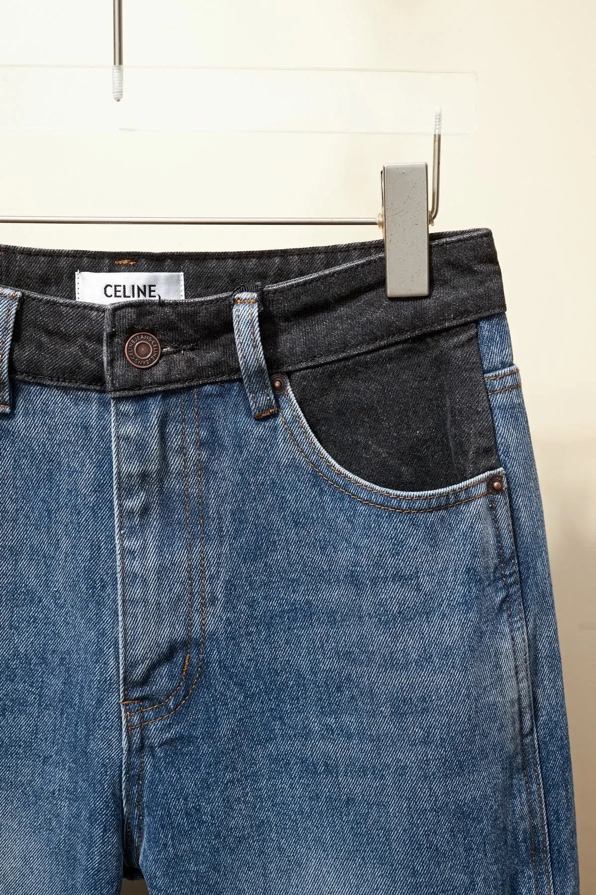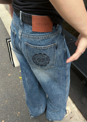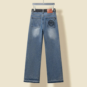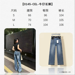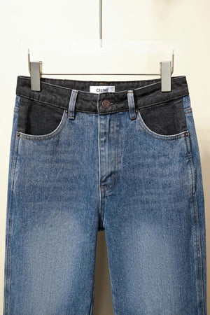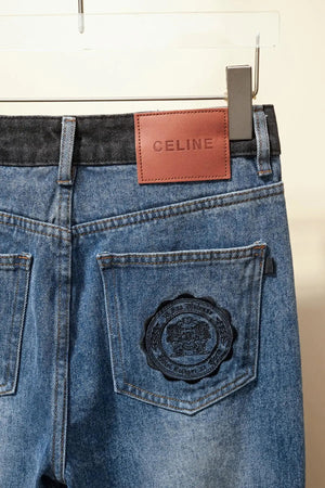 Celine Jeans Patchwork Waistband Denim Long Pants Women Versatile Casual