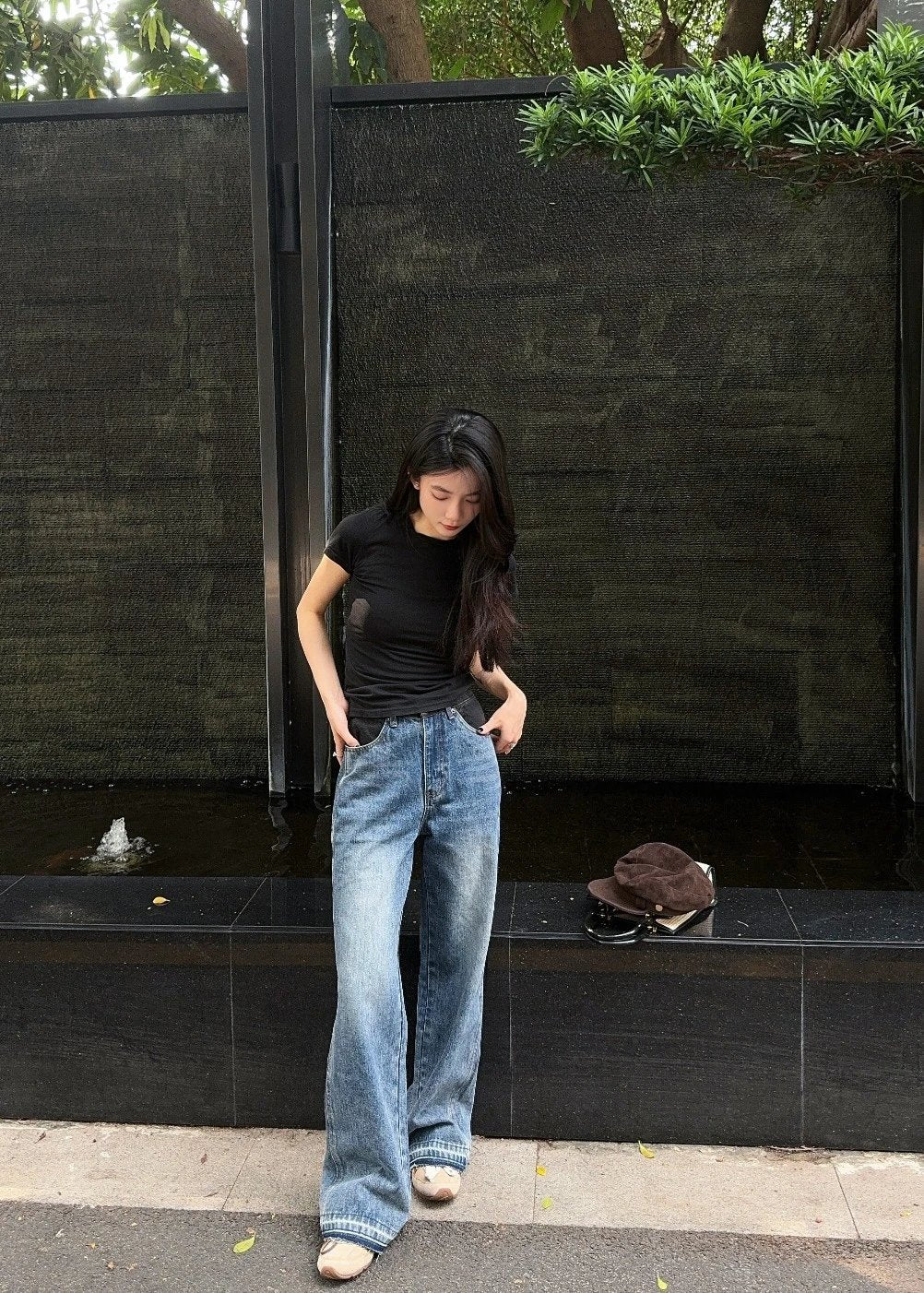 A must-have item, simple yet elegant, easily sets you apart. The diagonal stripe texture washable fabric is soft and skin-friendly with a structured fit that easily matches various styles. Made from siro yarn fabric with a patchwork waistband, embroidered back pocket, detachable cuffs, custom hardware, and a high-waisted straight-leg design!