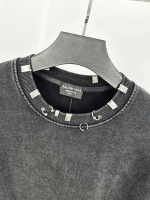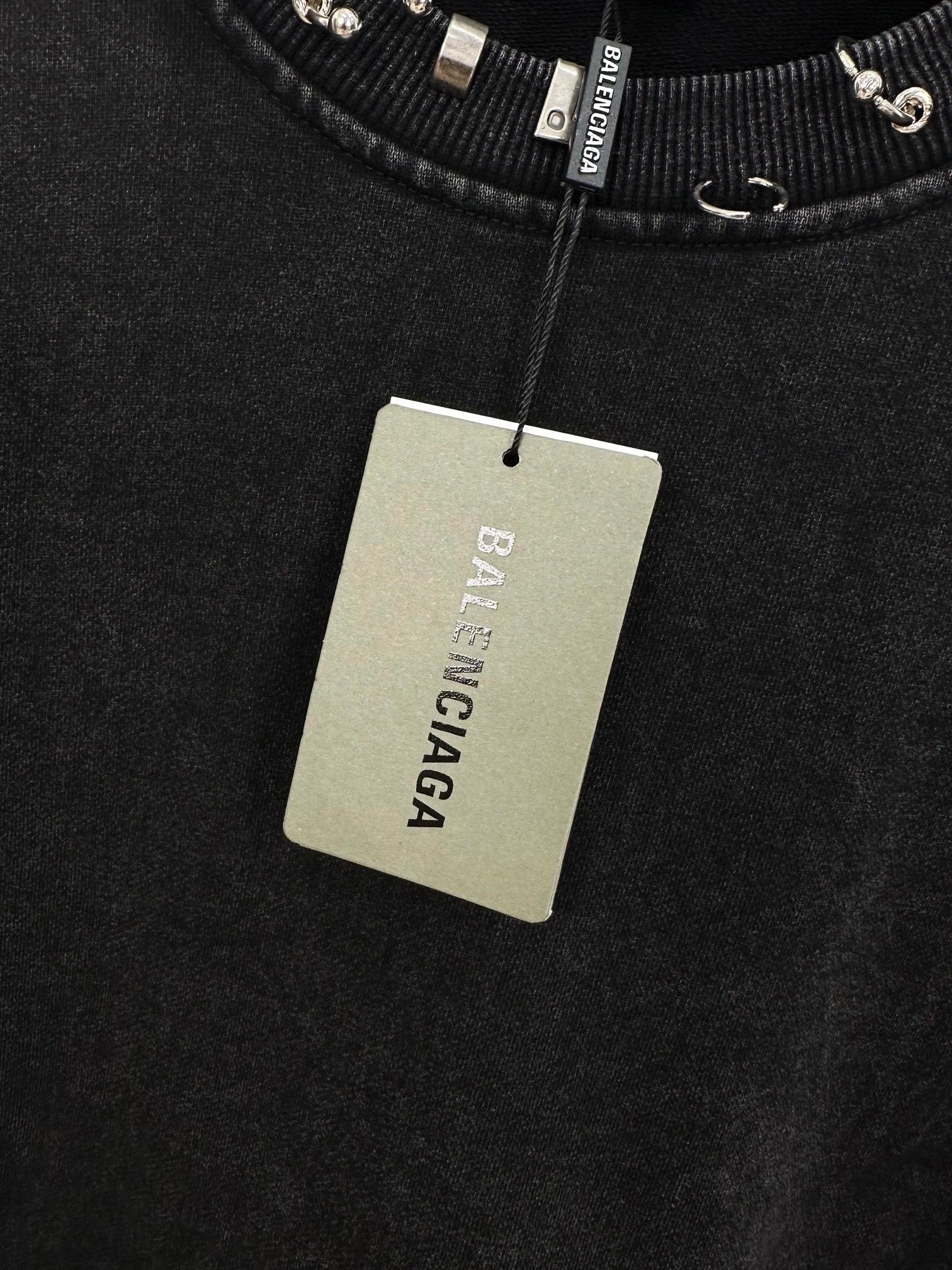 Balenciaga Hole Punch Iron Ring Crew Neck Long Sleeve T-Shirt Sweatshirt 480g Pure Cotton Casual Loose Versatile Pullover Base Shirt OS Version Top Unisex 24SS Autumn Winter New Arrival Pre-Purchase Instructions