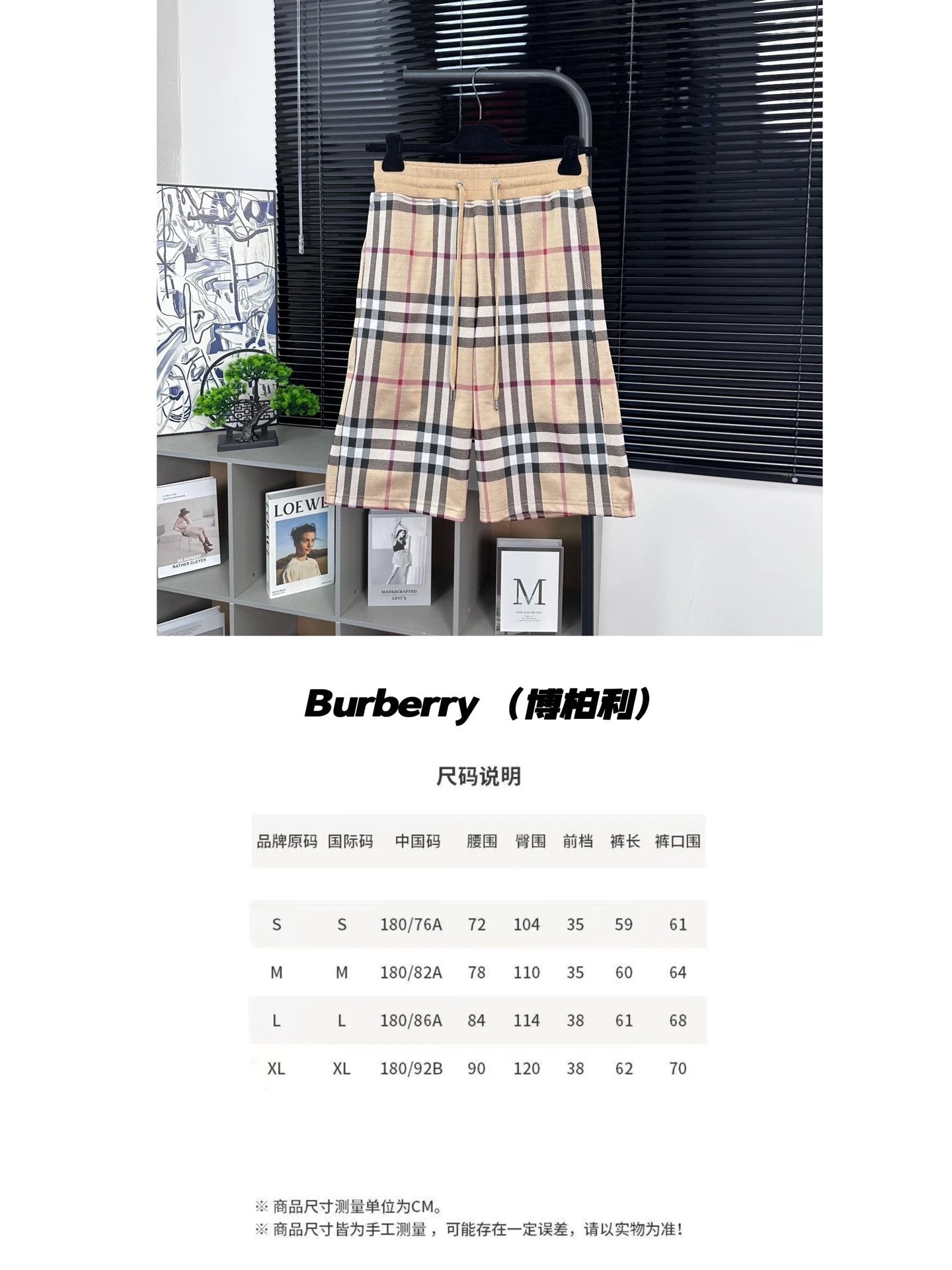 Burberry Shorts Plaid Print logo Five-point Shorts25ss New Drawstring Casual Summer Pants5Two-in-One Casual Sweatpants for Men and Women, Pure Cotton Joggers