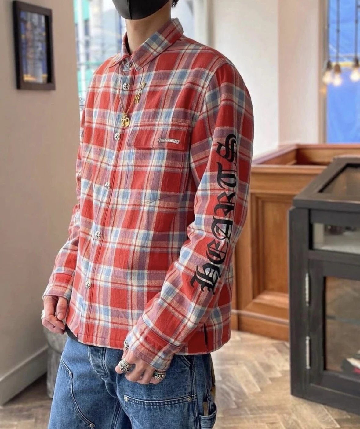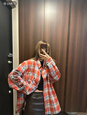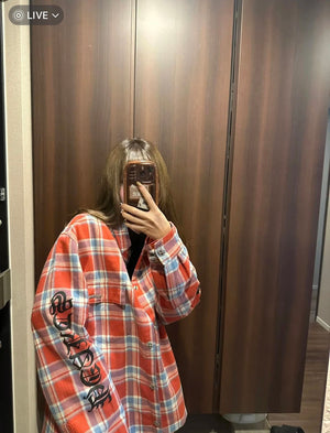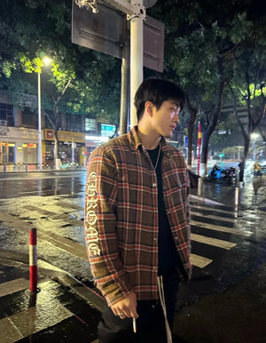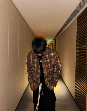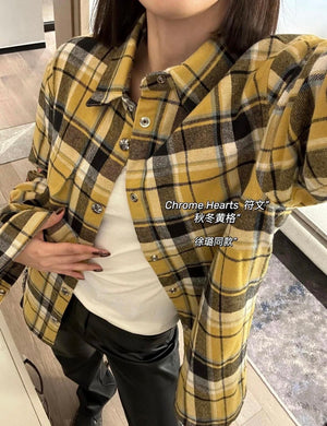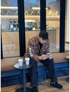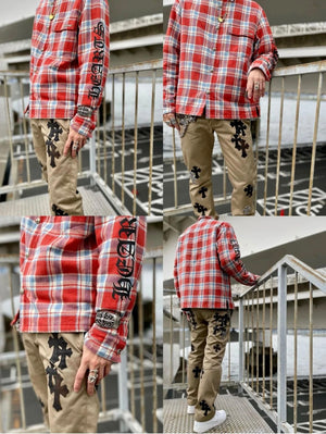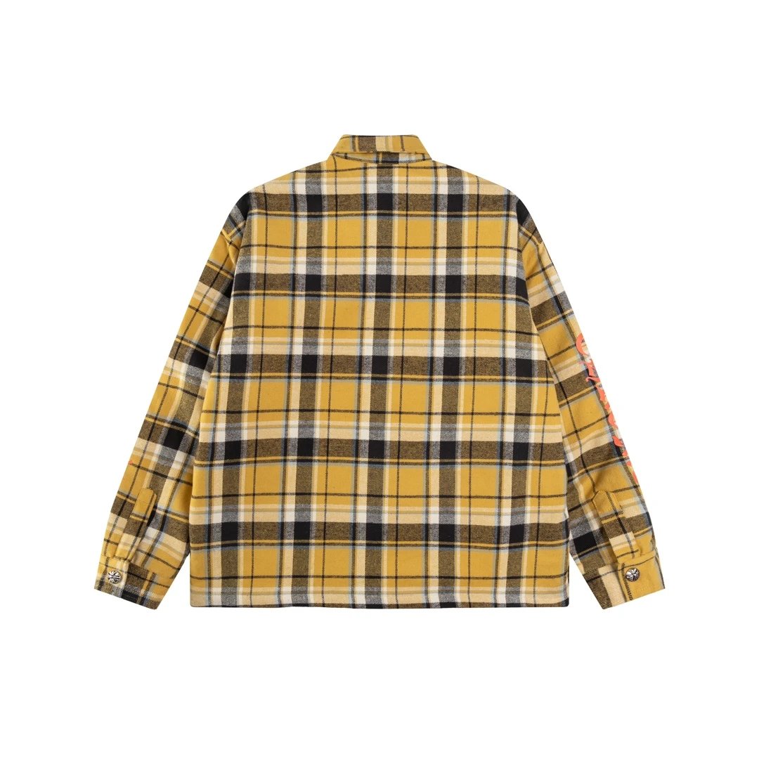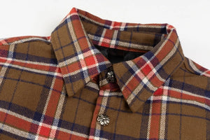 Chrome Hearts Shirt Plaid Silver Embellished Shirt Jacket Cotton Coat Unisex