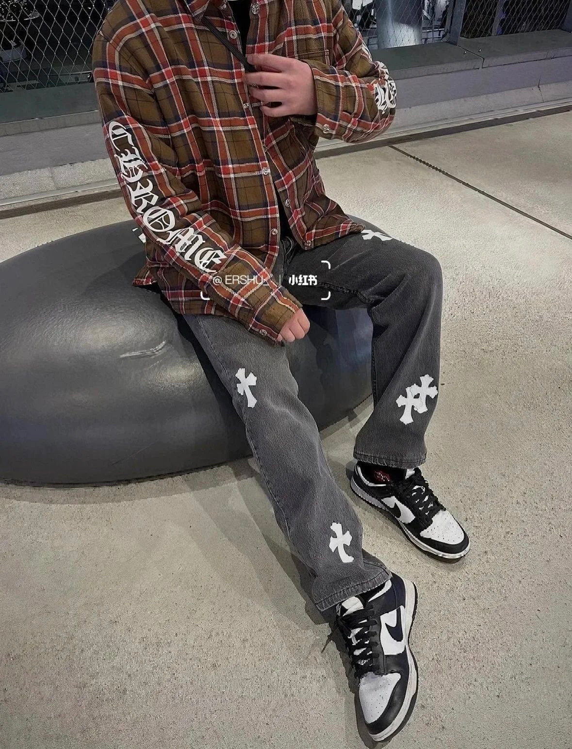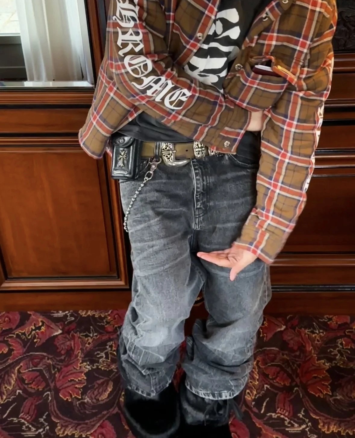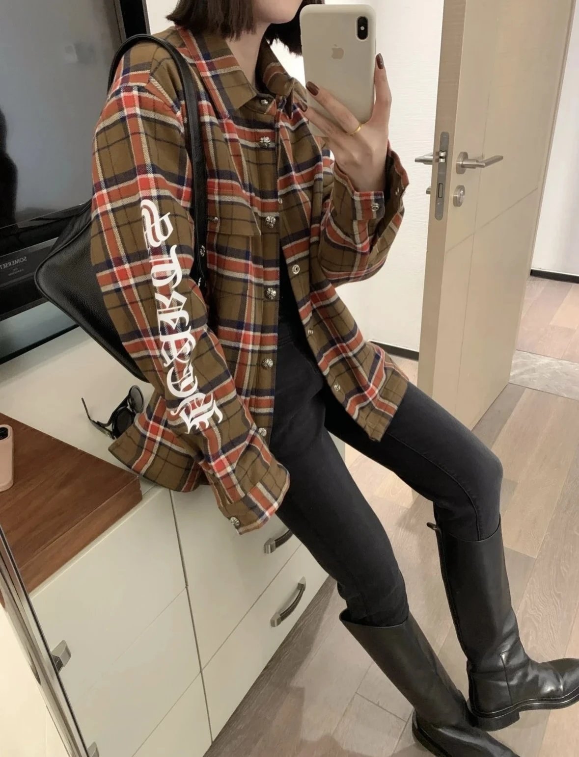 Chrome Hearts Shirt Plaid Silver Embellished Shirt Jacket Cotton Coat Unisex