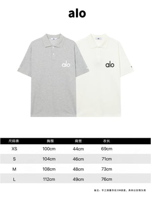 Alo Yoga T-shirt Plastic Letters on Chest logoPOLO Shirt Lapel Short Sleeve25ss New Unisex Commuter Short Sleeve Summer Loose Fit T Business Shirt Plus Size T-Shirt
