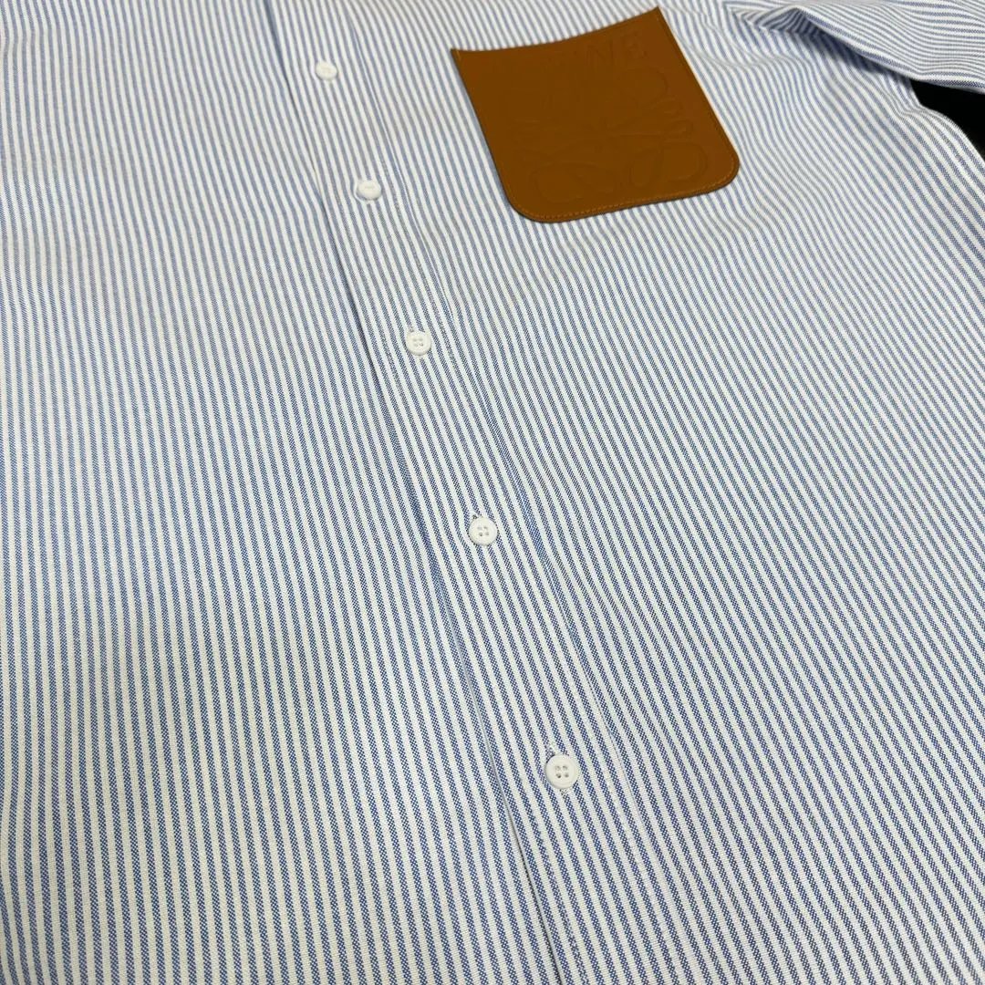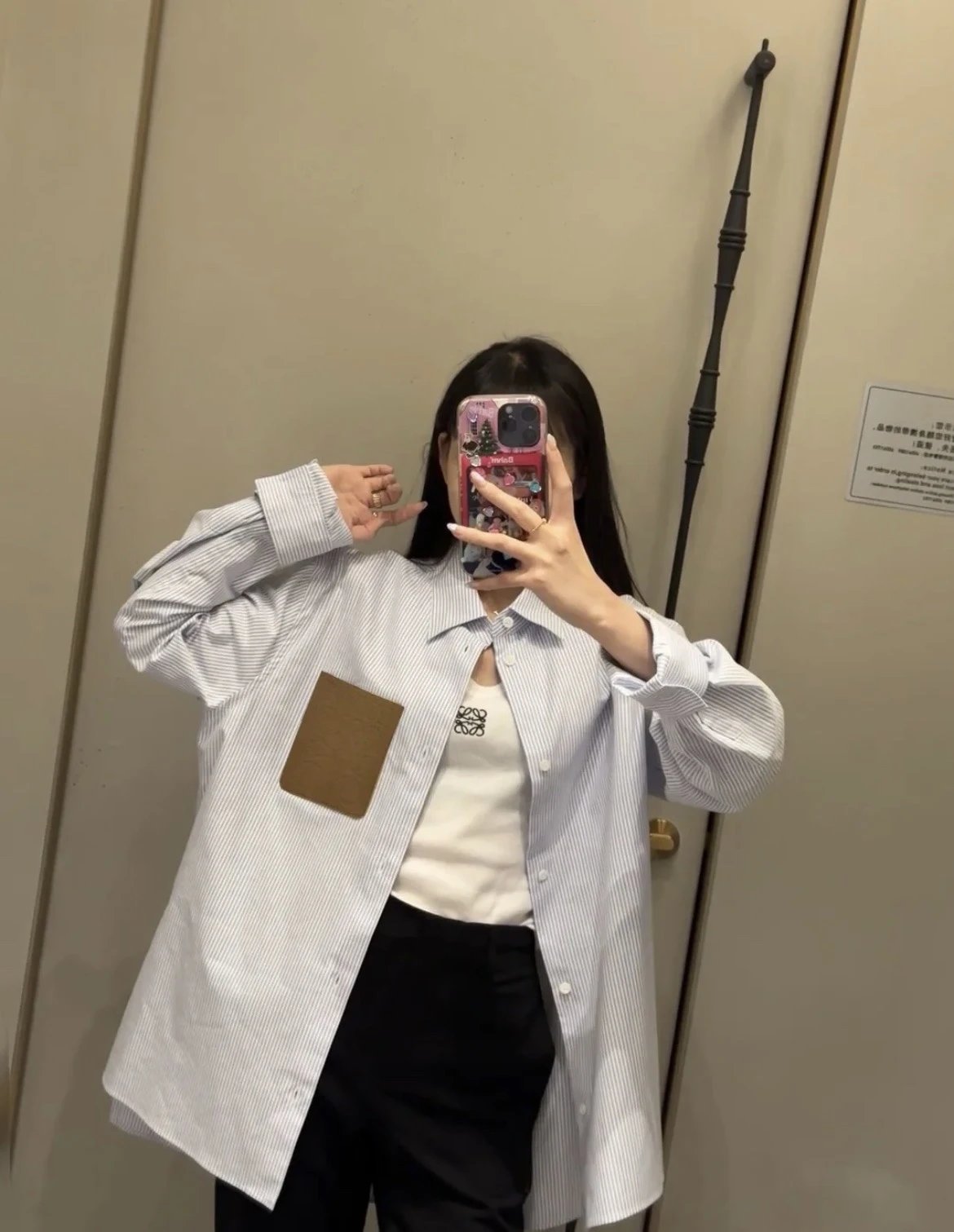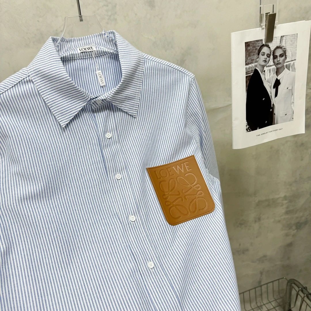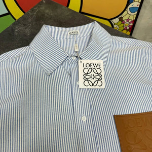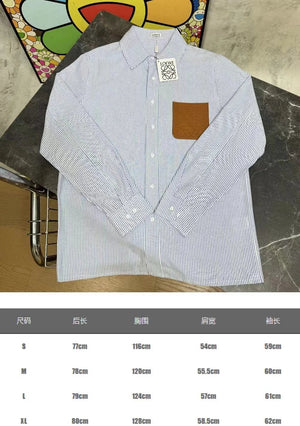 LOEWE Shirt Pocket Button Striped Shirt Loose Casual Long Sleeve Shirt with Leather Label os Cardigan Jacket Unisex Inner Layer24ss Autumn and Winter New Products